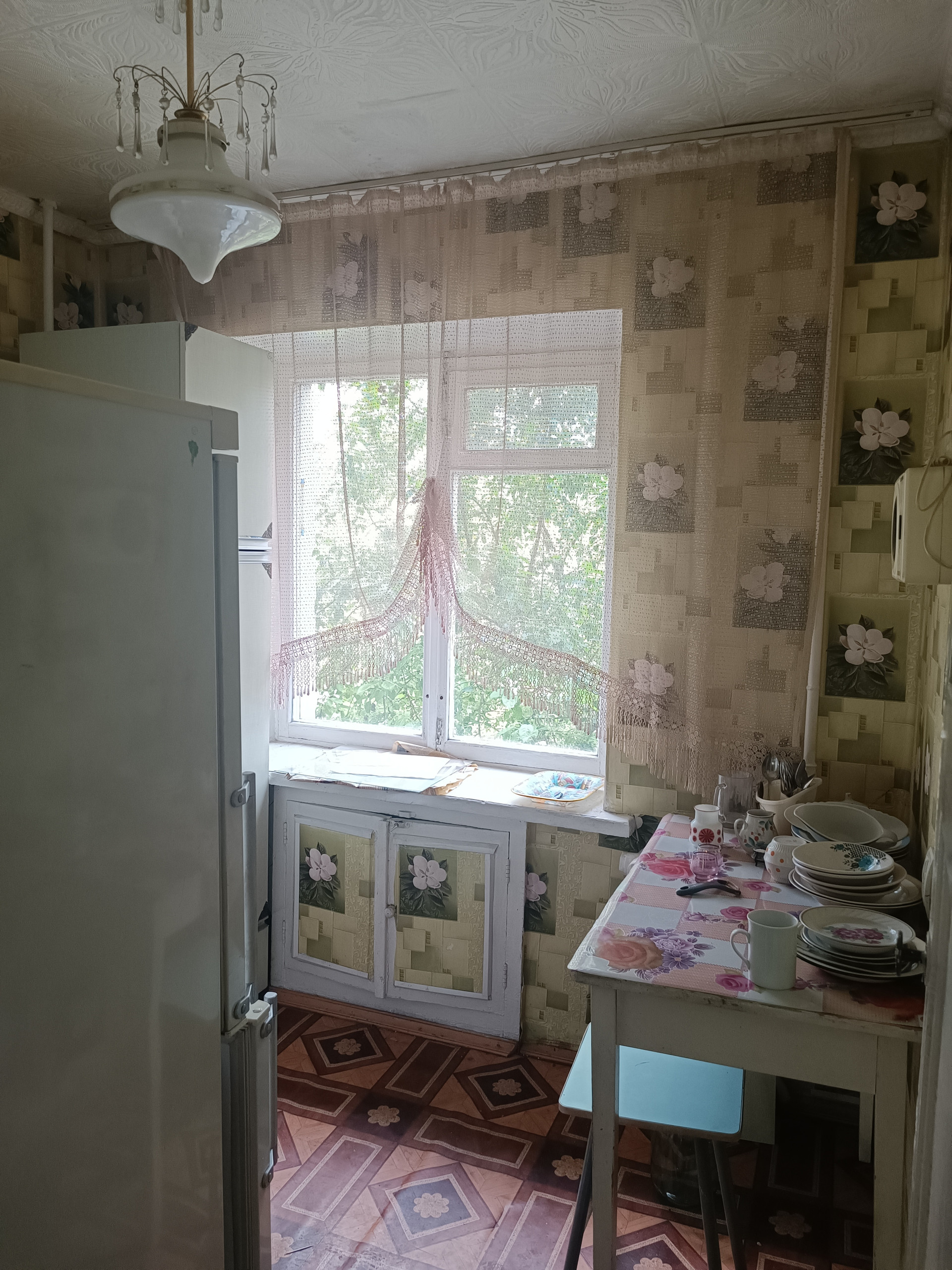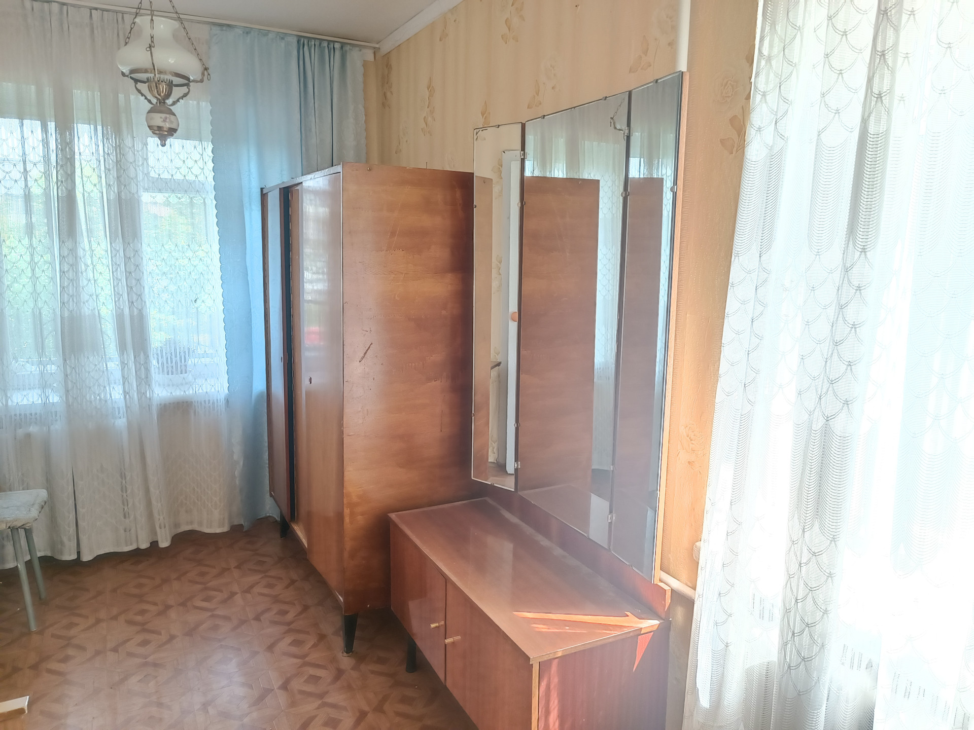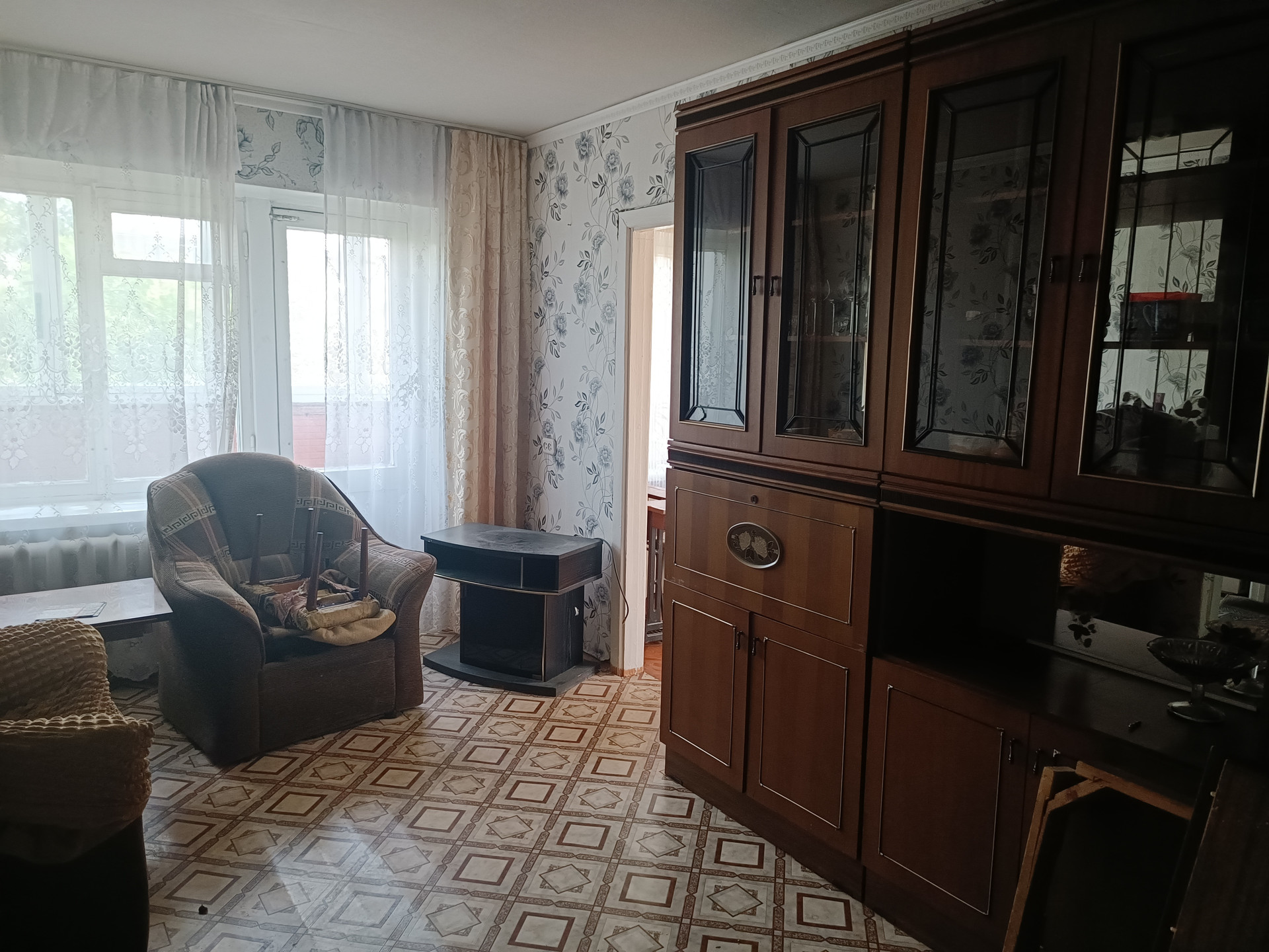 Общая площадь 45 кв.м.  Хрущевка. Комнаты смежные. С/узел совмещен. Большая кладовка. Очень светлая и тёплая квартира. Железная дверь. Состояние квартиры – бабушкин вариант. Без долгов, без обременений.