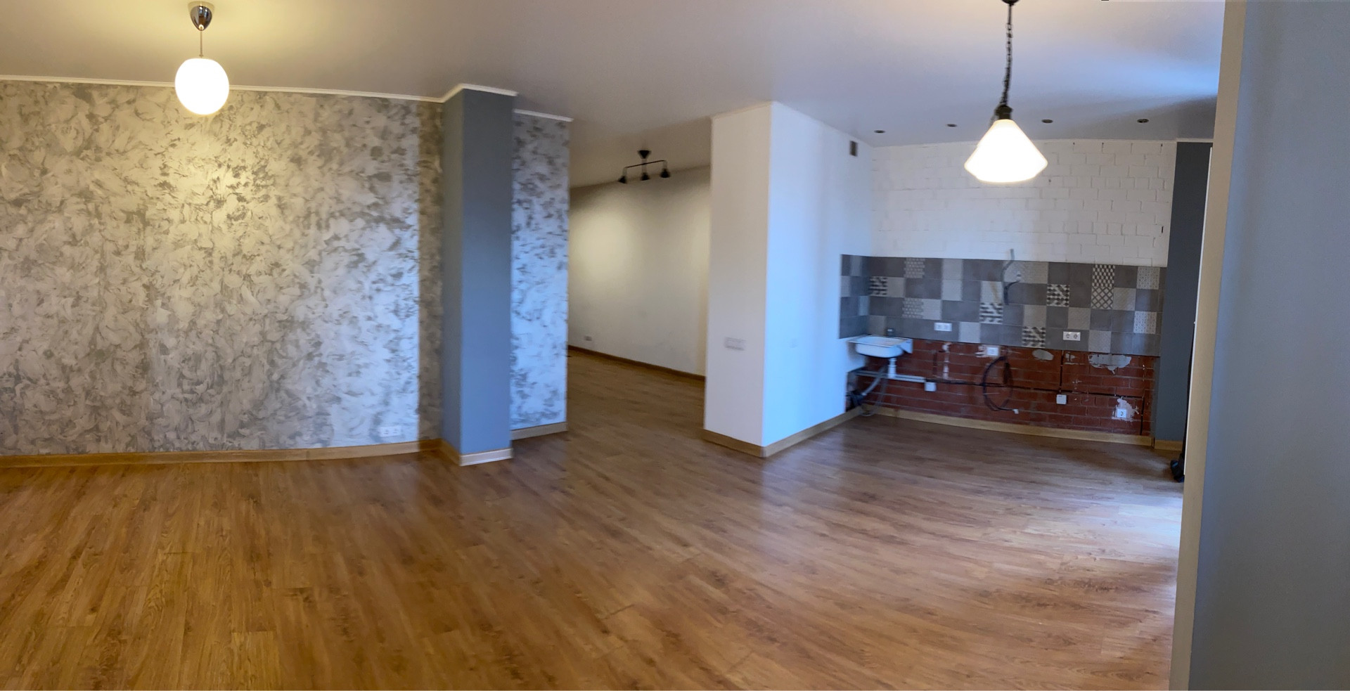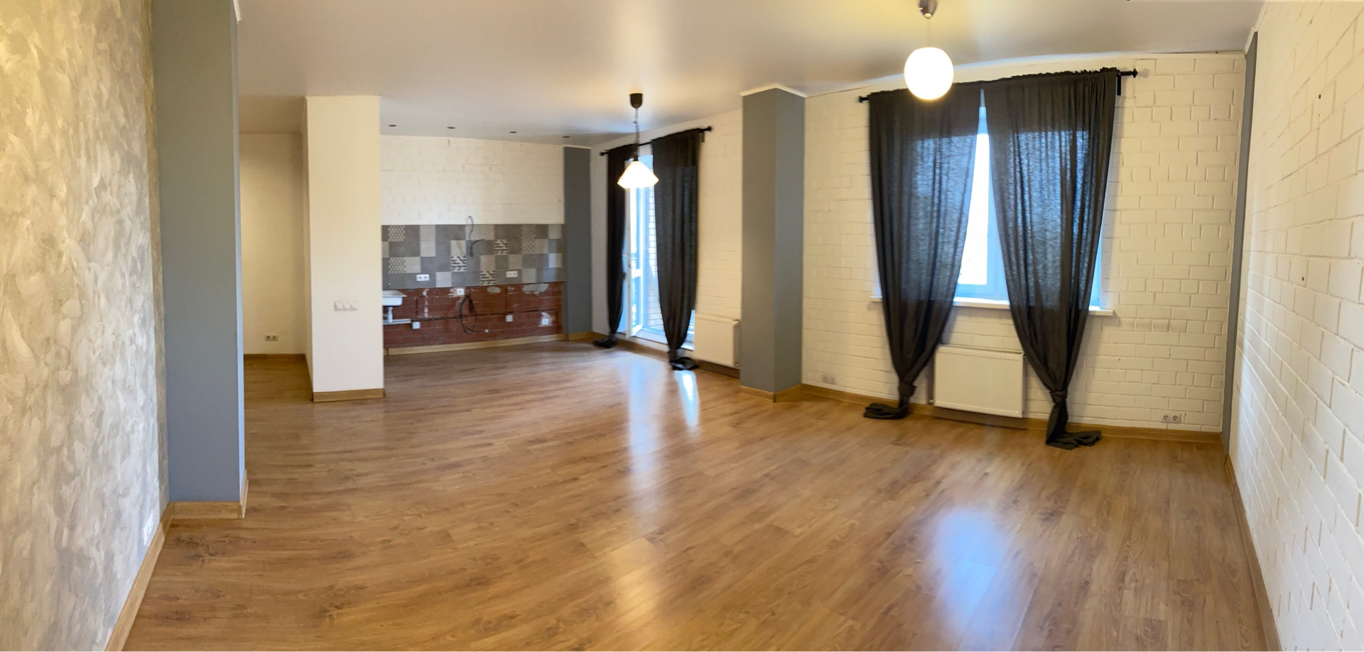 •    Стены выровнены и оштукатурены (легко мыть и ухаживать, можно менять оттенок)