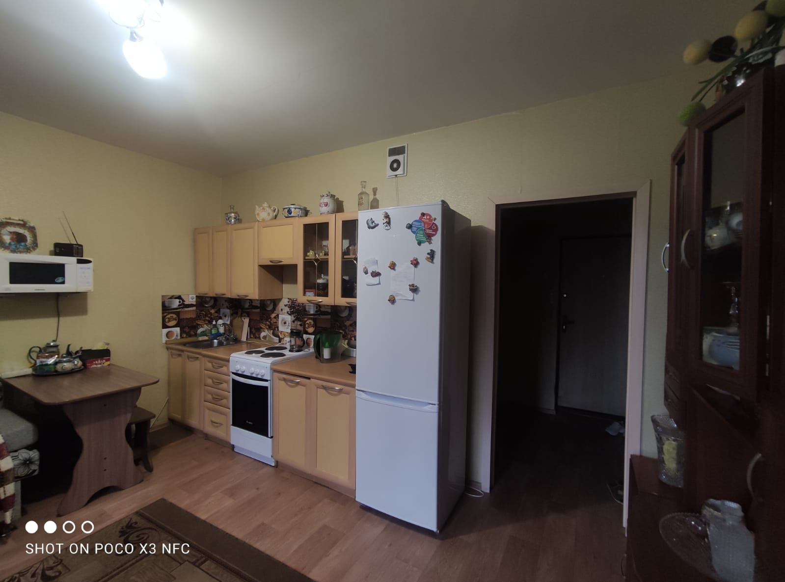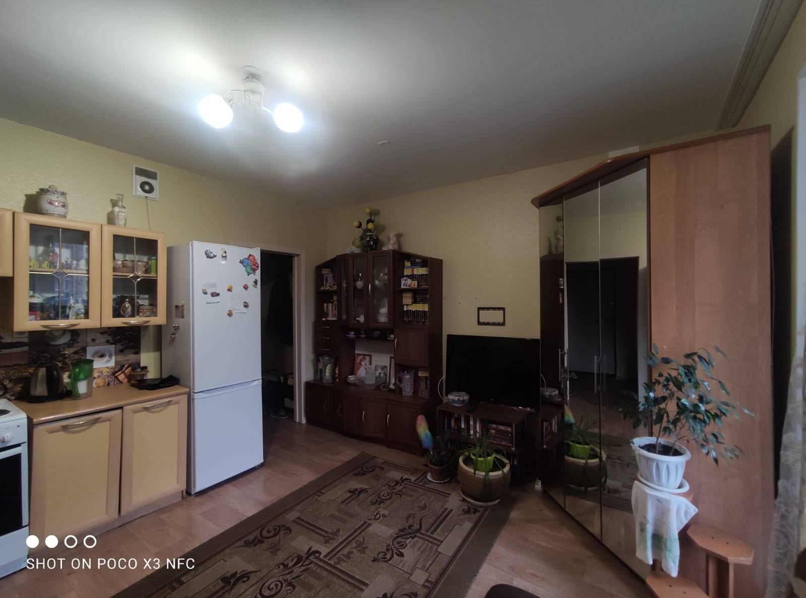 В квартире выполнен ремонт от застройщика (линолеум, потолки натяжные, межкомнатные двери, входная металлическая дверь, счетчики учета). Сан.узел в кафеле. Остается кухонный гарнитур и встроенный шкаф-купе.