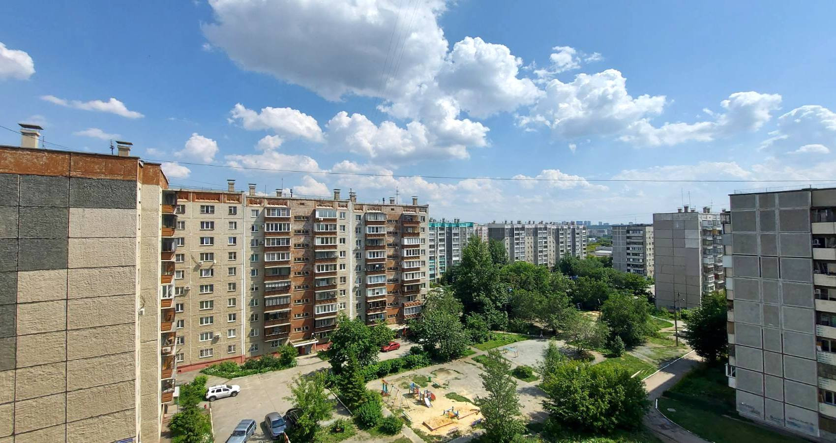 Седьмой этаж - и не очень высоко, и вид из окон красивый. Восточная сторона.