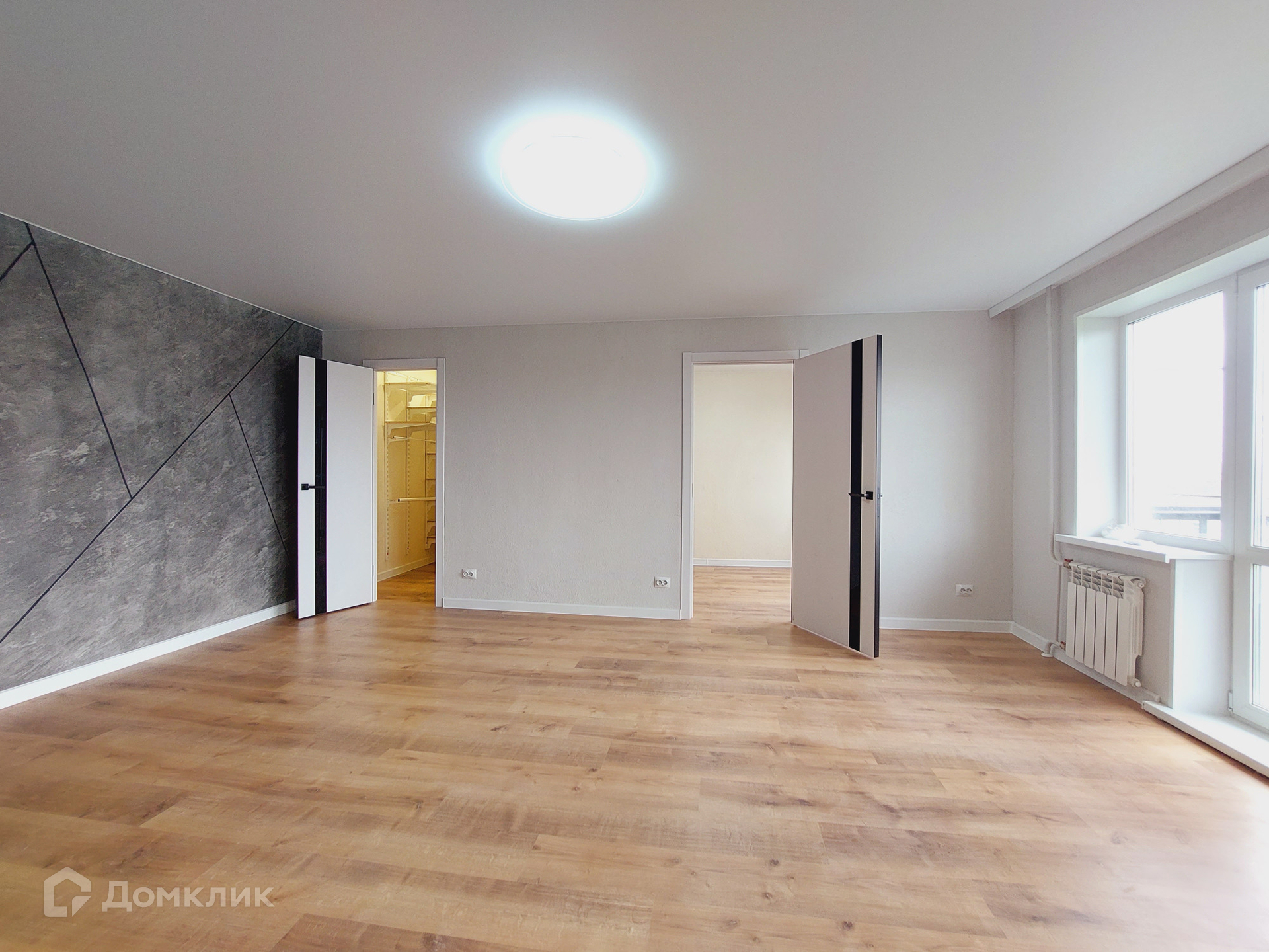 В квартире удобная планировка, практически вся площадь полезная, небольшая прихожая, кухня объединена с залом, два больших окна и выход на балкон создают светлое и комфортное пространство.