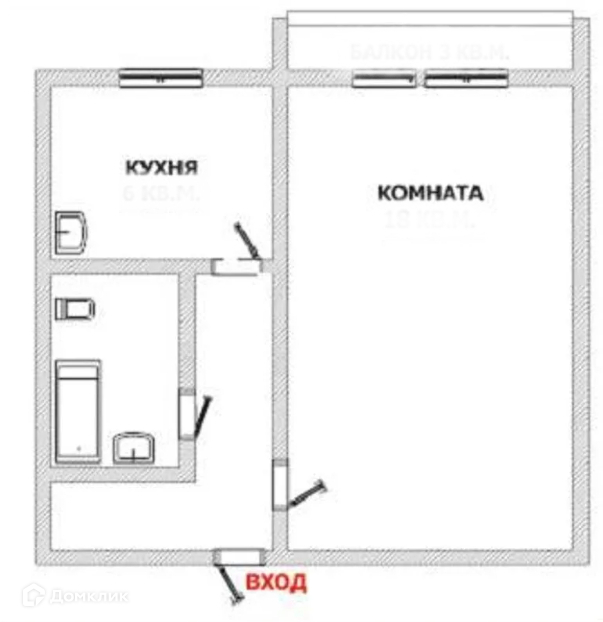 Балкон, лоджия 1 балкон