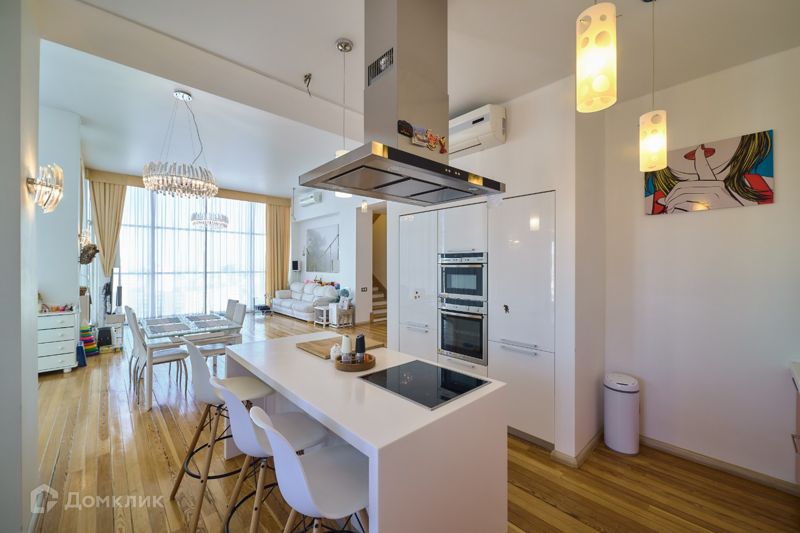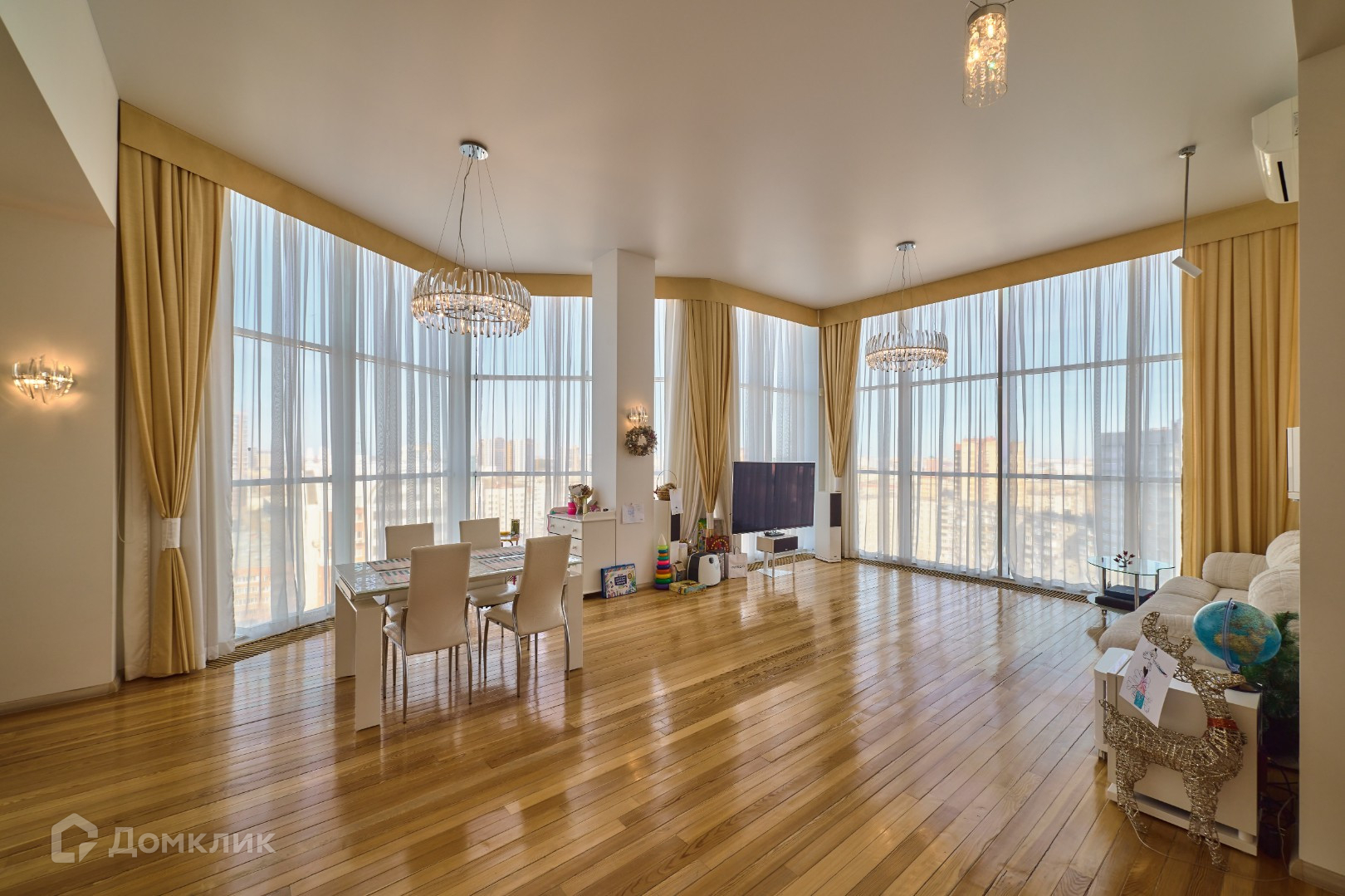 - Видовая квартира расположена в элитном доме. Высота потолков 4 метра и панорамные окна придают атмосферность квартире.
