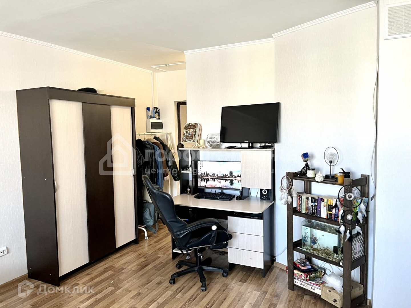 Квартира на 9 этаже,  не пыльно, хорошая шумоизоляция. Потолок окрашен в белый цвет, Обои моющиеся, ламинат от застройщика. Остается  кухонный гарнитур, стиральная машина, кондиционер.