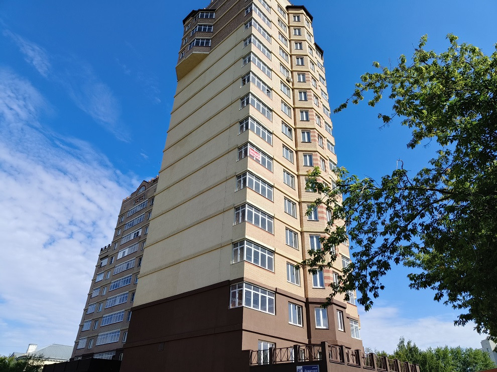 Дом удачно расположен близко к центру города и при этом в тихом дворе где много зелени и тишина, окна квартиры выходят на детский садик, в доме есть подземный паркинг.