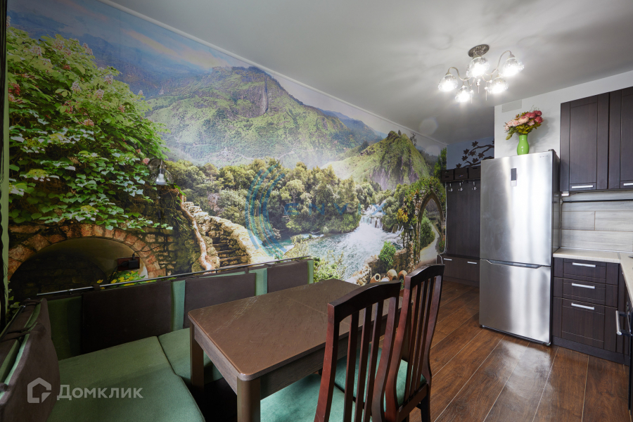 В квартире выполнен  ремонт: заменены межкомнатные двери , стены окрашены, на кухне фотообои, на полу линолеум, в санузле керамическая плитка, благоустроена лоджия.