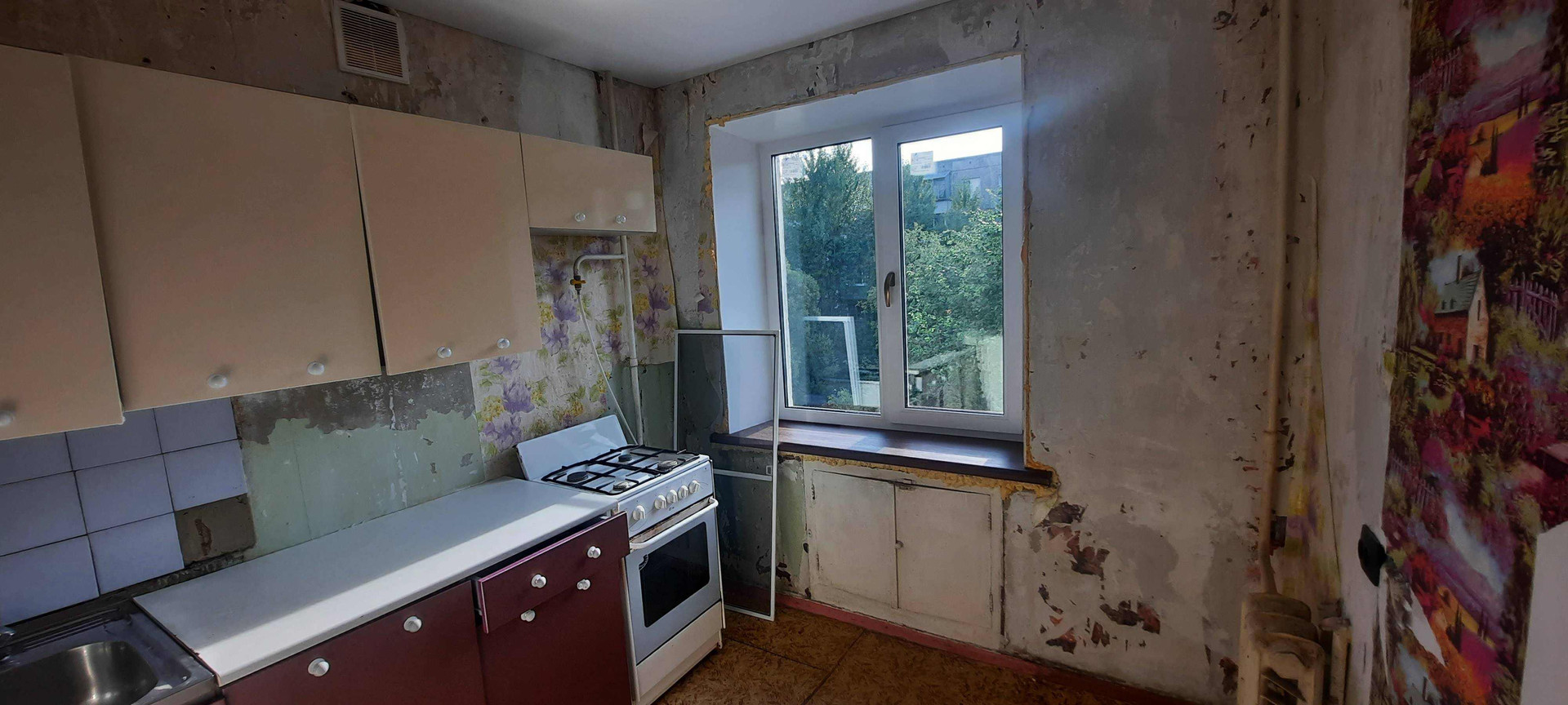 На кухне евроокно, в остальном требуется ремонт.