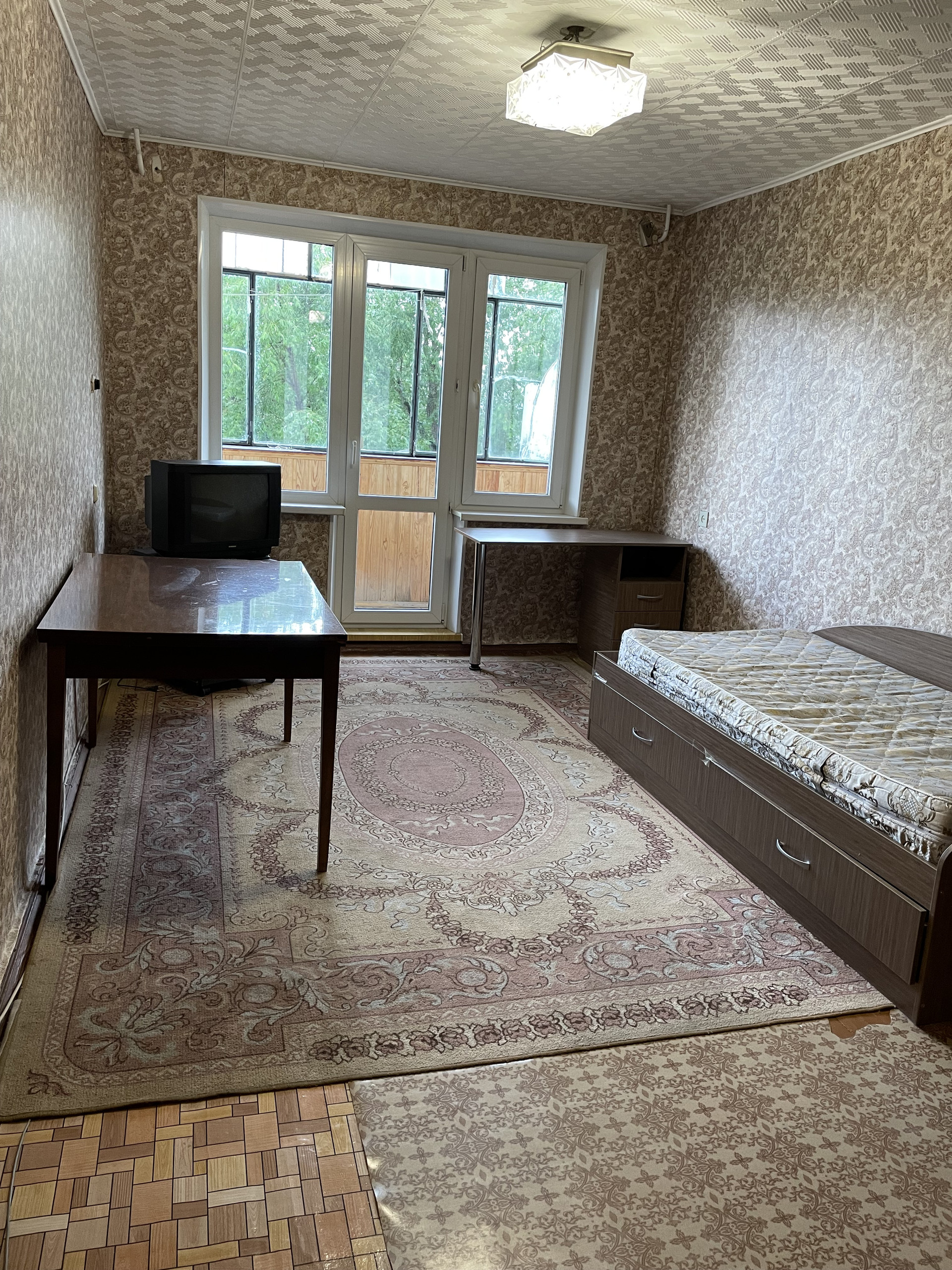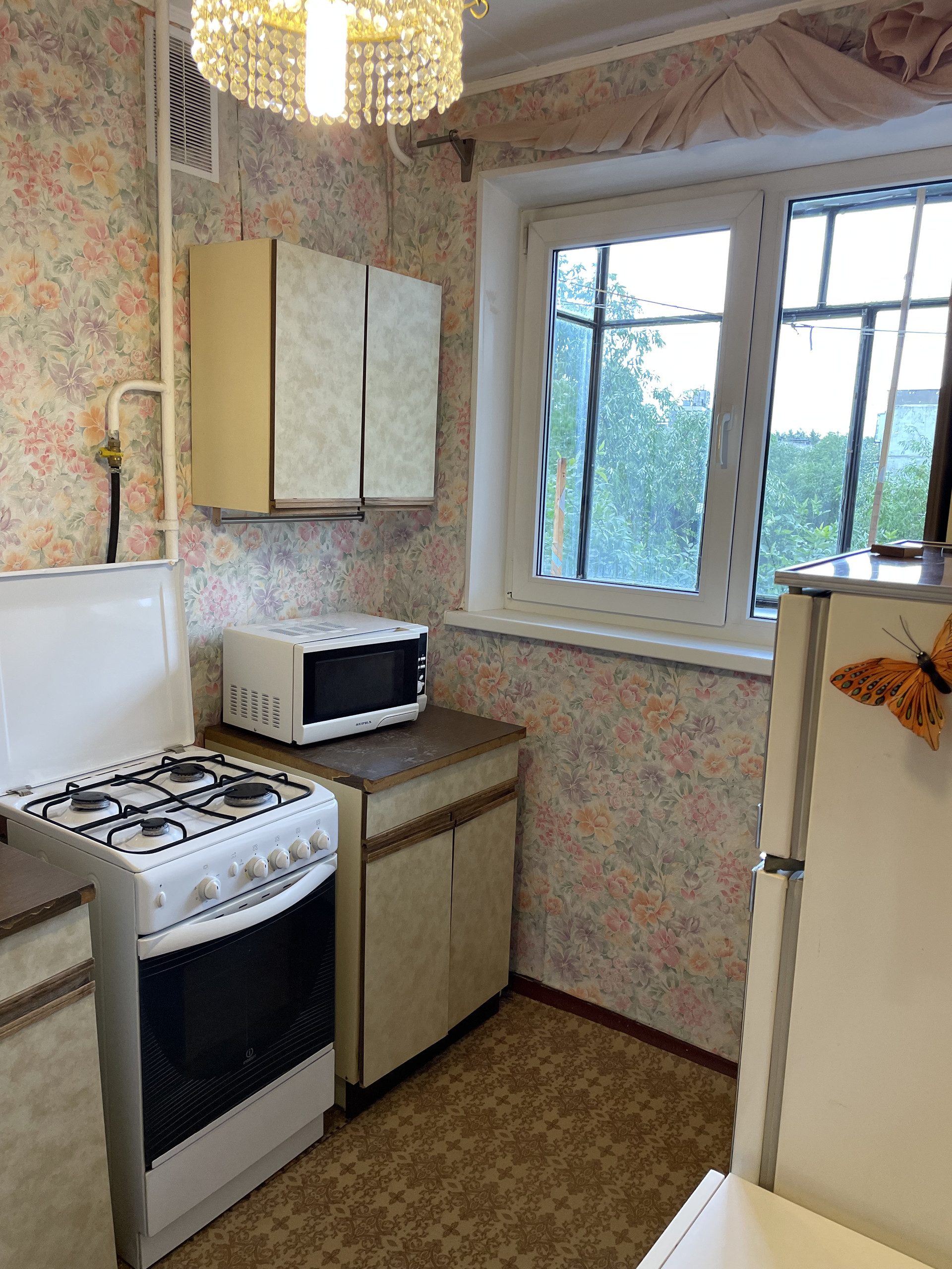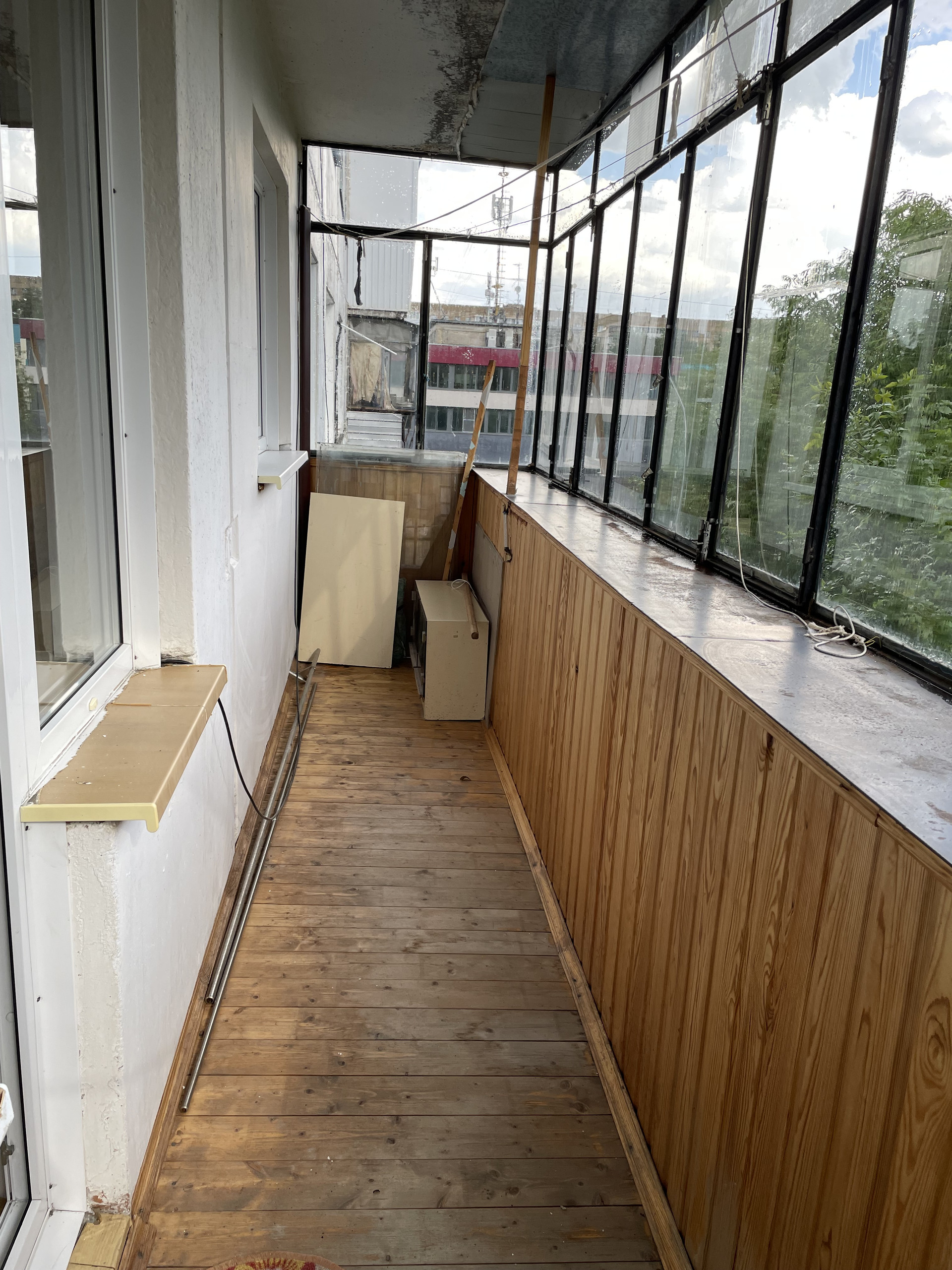 Установлены пластиковые стеклопакеты, балкон застеклен.
