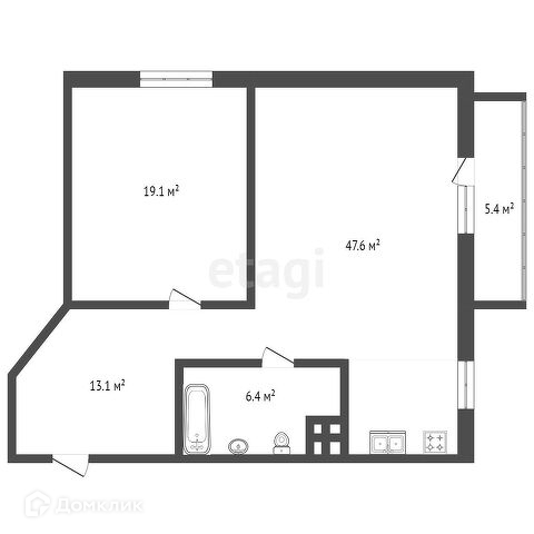 Балкон, лоджия 1 балкон
