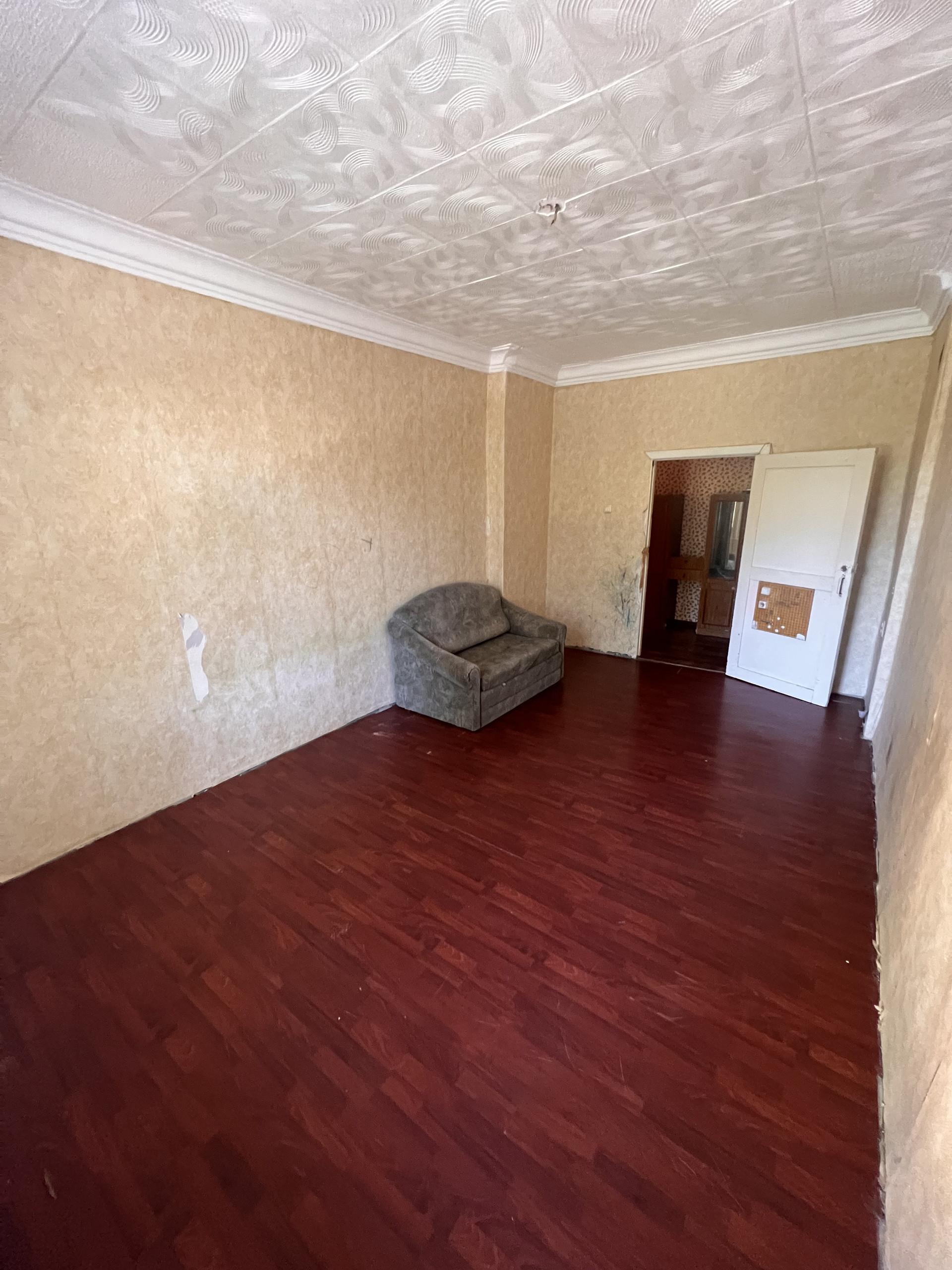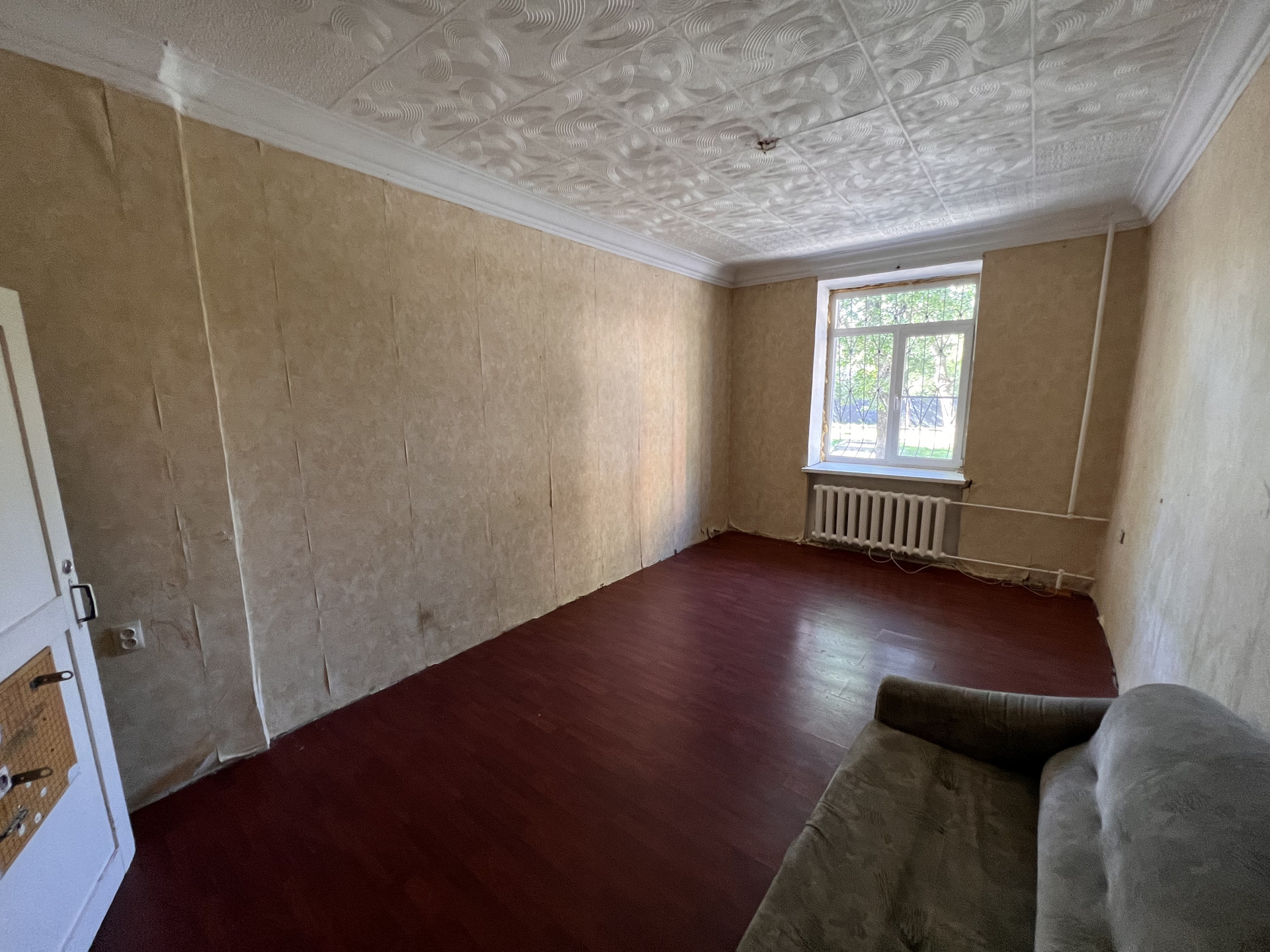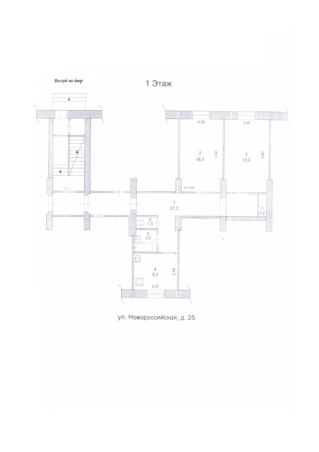 1 этаж 3 этажного дома, в квартире высокие потолки (3 м.), большие жилые комнаты - 18,9 кв.м., 18,4 кв.м., раздельный санузел, кухня 9,4 кв.м., имеется обособленная кладовая.