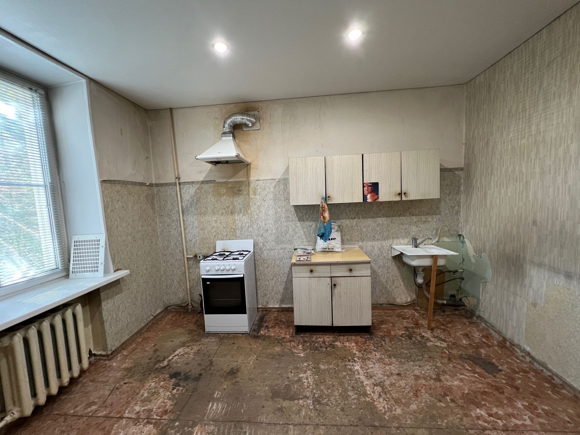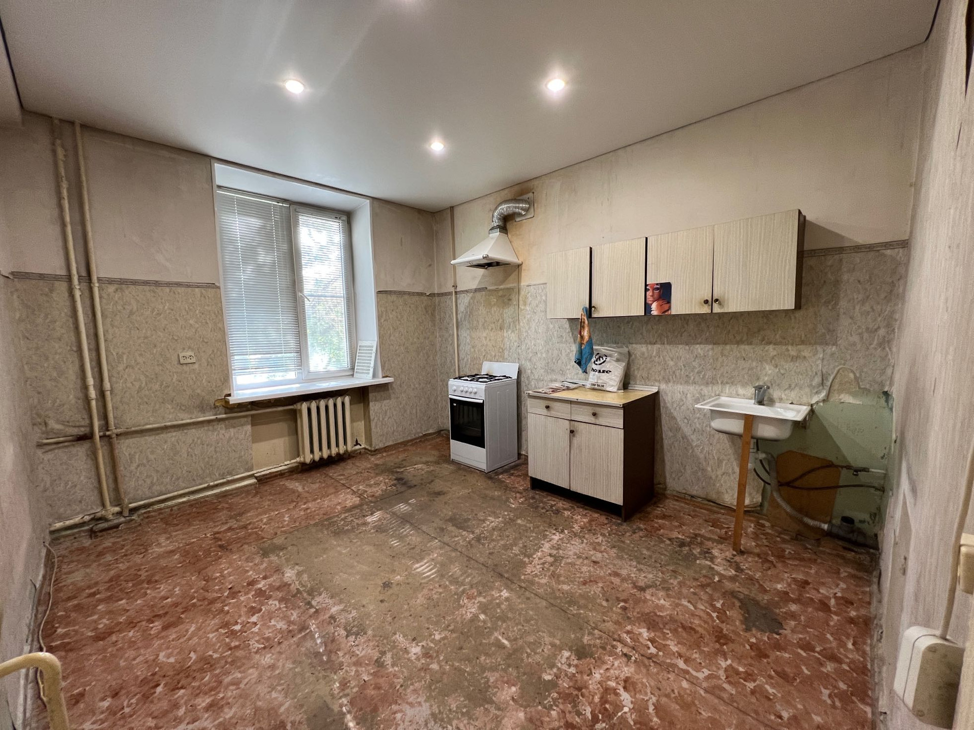 Однокомнатная квартира, просторная кухня , большая комната, высокие потолки.