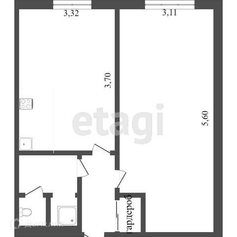 Общая площадь 35.5 м2