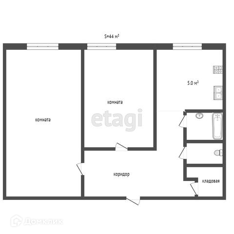 Общая площадь 43.9 м2