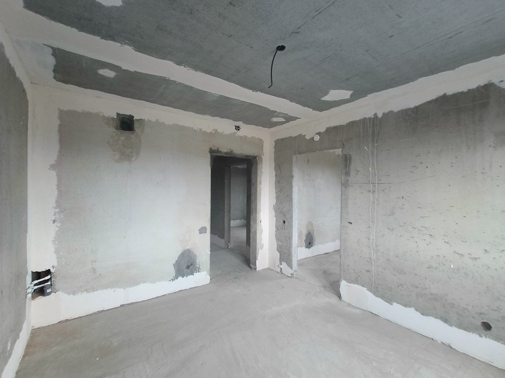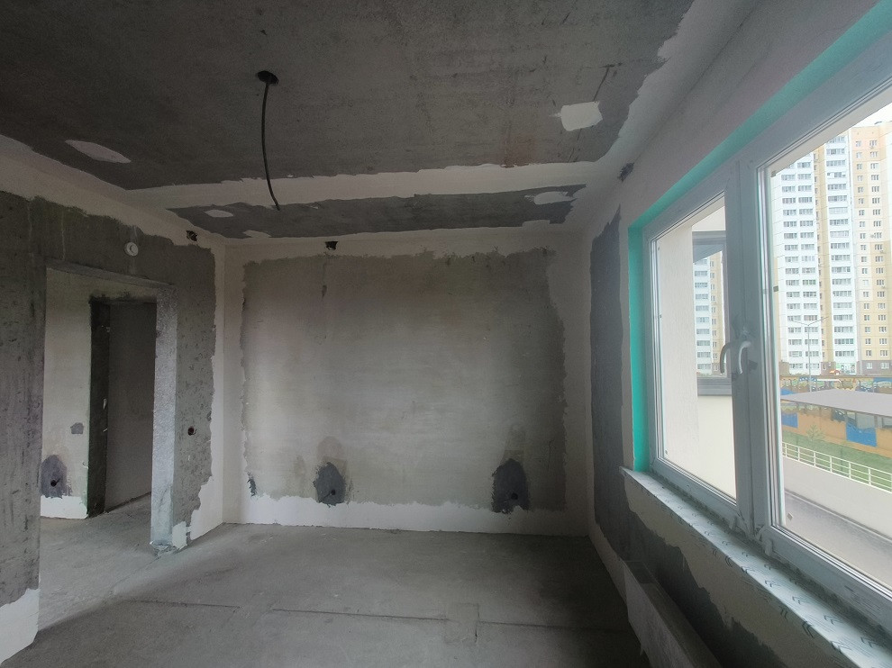 В квартире установлены пластиковые стеклопакеты, лоджия остеклена, штукатурка стен, входная железная дверь, электроразводка по квартире, разводка под сантехнику, счетчики на воду и электричество