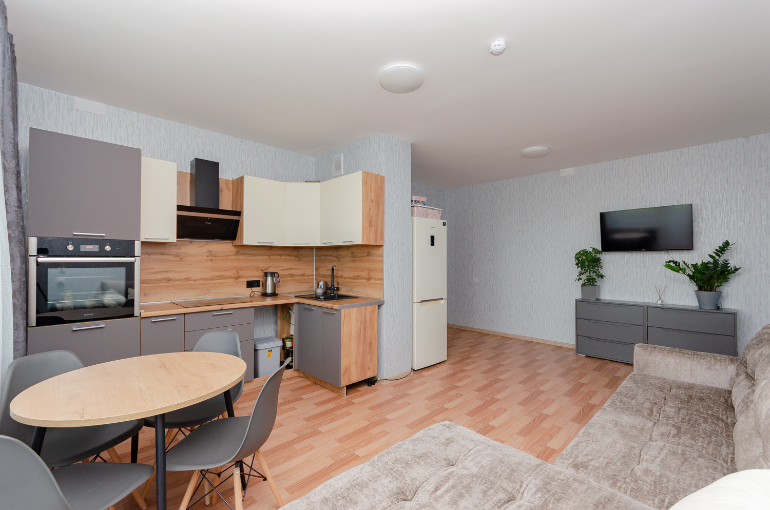 -Просторные кухня-гостиная и спальни.