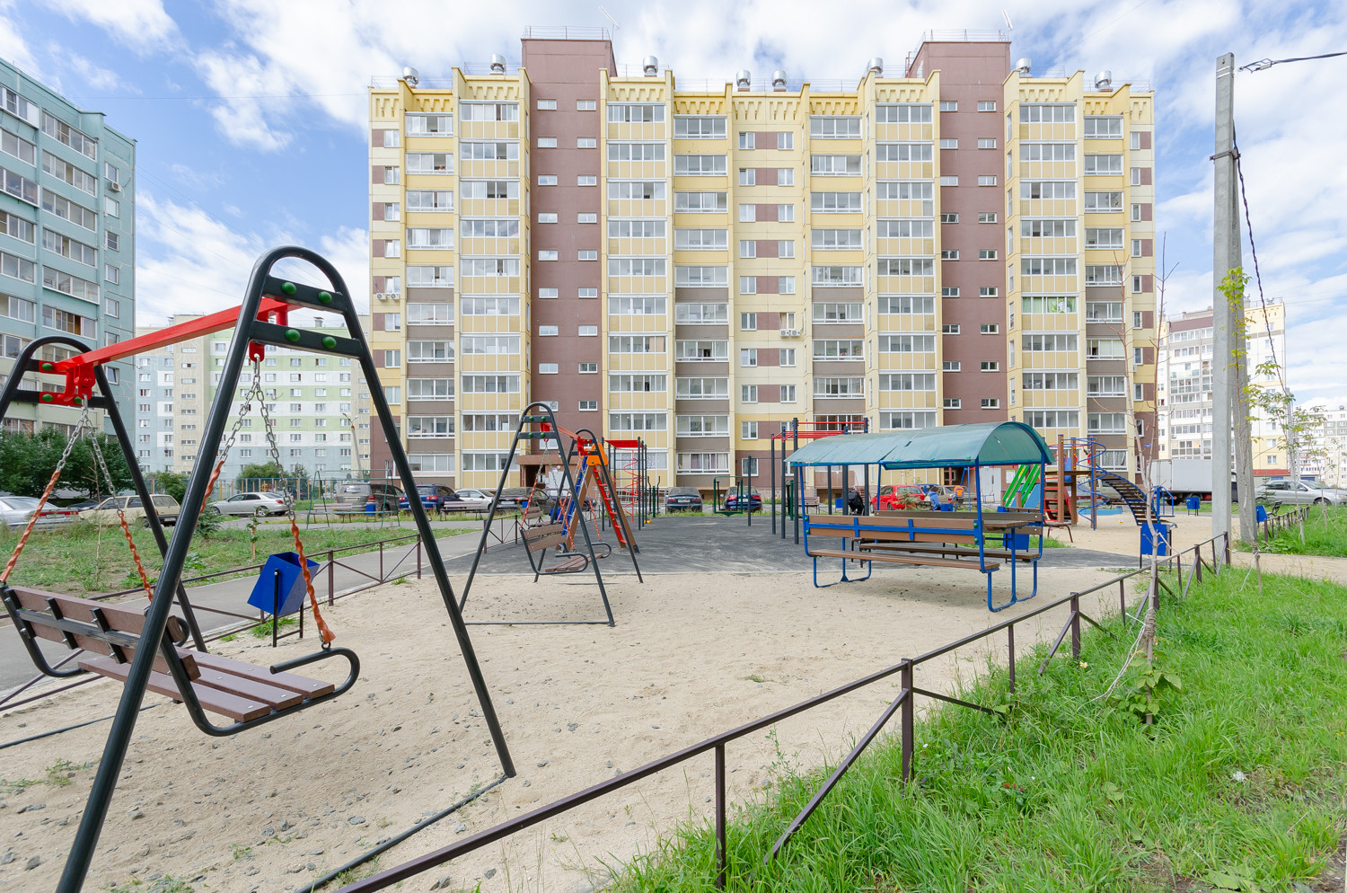Во дворе находится детская площадка.