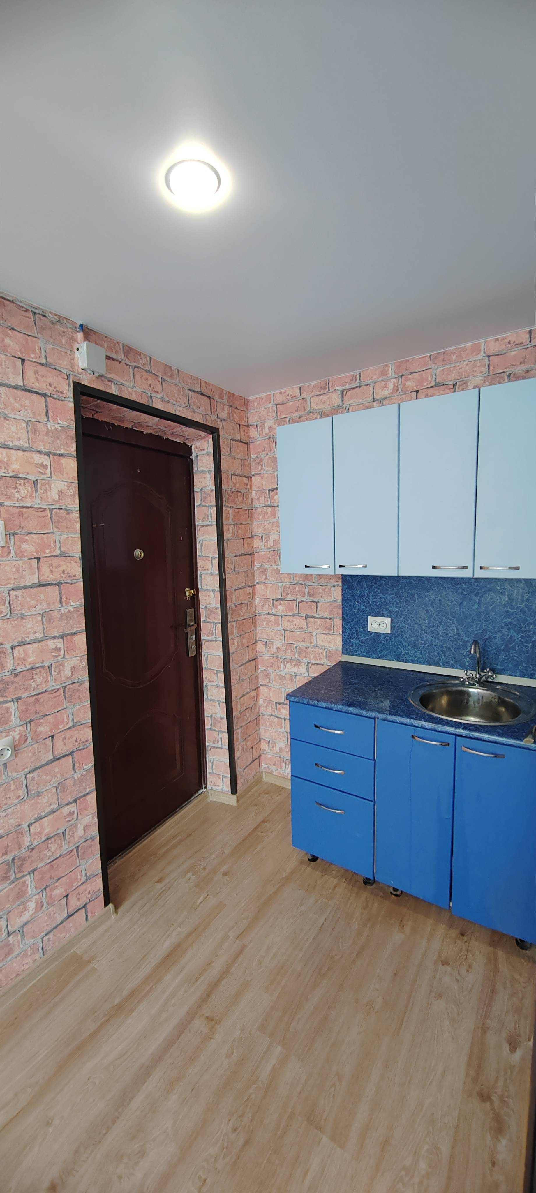 Продам комнату -студию в доме бывшего общежития,все условия для проживания,свой душ,унитаз, умывальник. В студии новый евроремонт- натяжные потолки, железная входная дверь,ламинат,флизелиновые обои,остаётся кухонный гарнитур,под умывальником в сан.узле выведены все коммуникации под стиральную машину.Коммунальные платежи маленькие,долгов и обременений нет, прописанных лиц нет.Документы будут готовы к сделке к 10 сентября.Продажа только за наличные! Ипотеку,не рассматриваю.