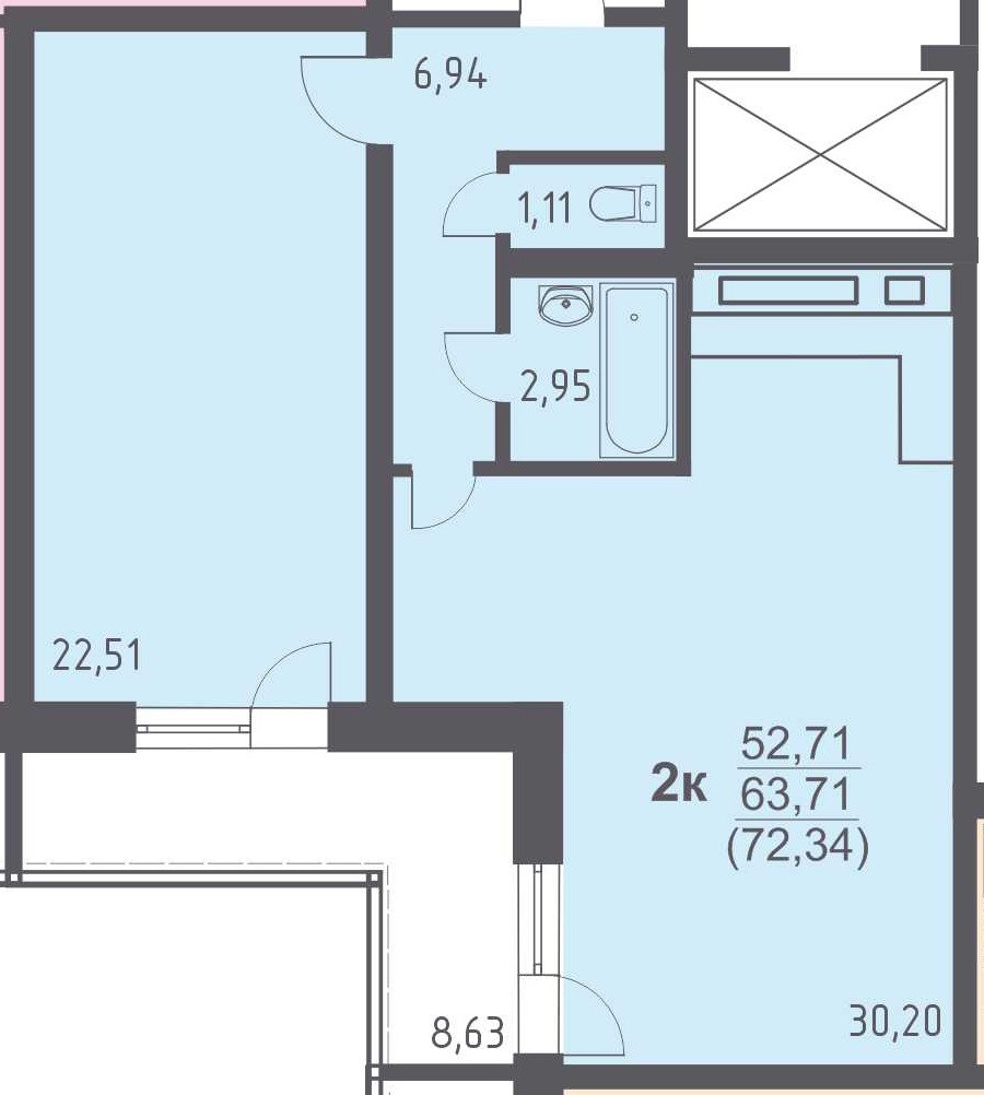 Общая площадь 72 м2