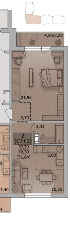 Общая площадь-51,84м