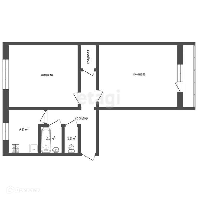 Квартира расположена на 2 этаже 5-ти этажного дома. Общая площадь квартиры составляет 43,7 квадратных метров.