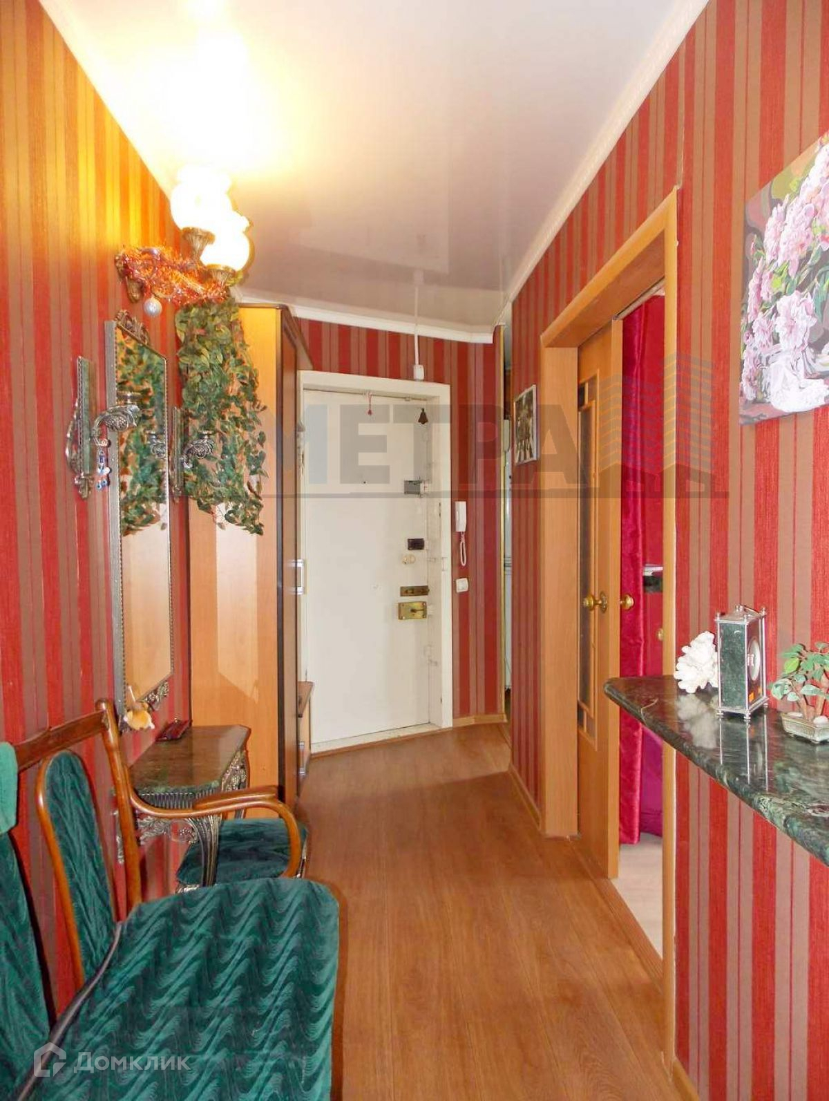 В квартире остается кухонный гарнитур с встроенной техникой, шкафы для одежды, прихожая, кондиционер, водонагреватель.
