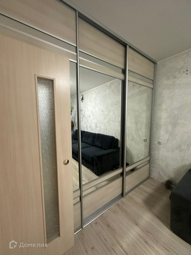 - В комнате на всю стену встроенный шкаф-купе;