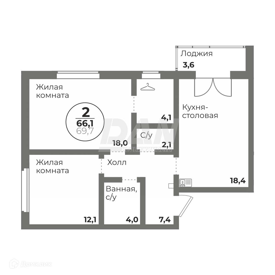 Общая площадь 66.1 м2