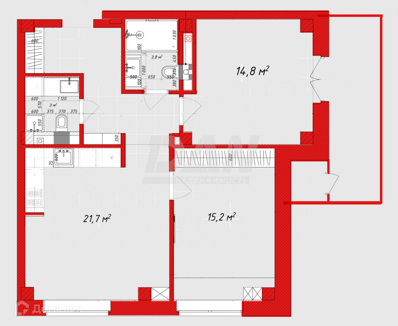 Площадь кухни 22 м2