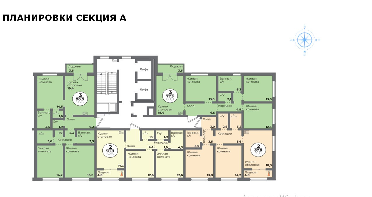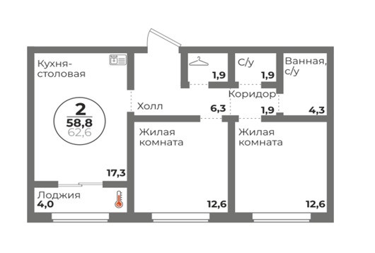 Общая площадь 58.8 м2