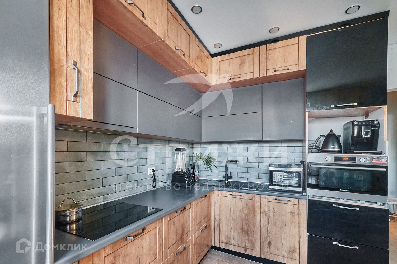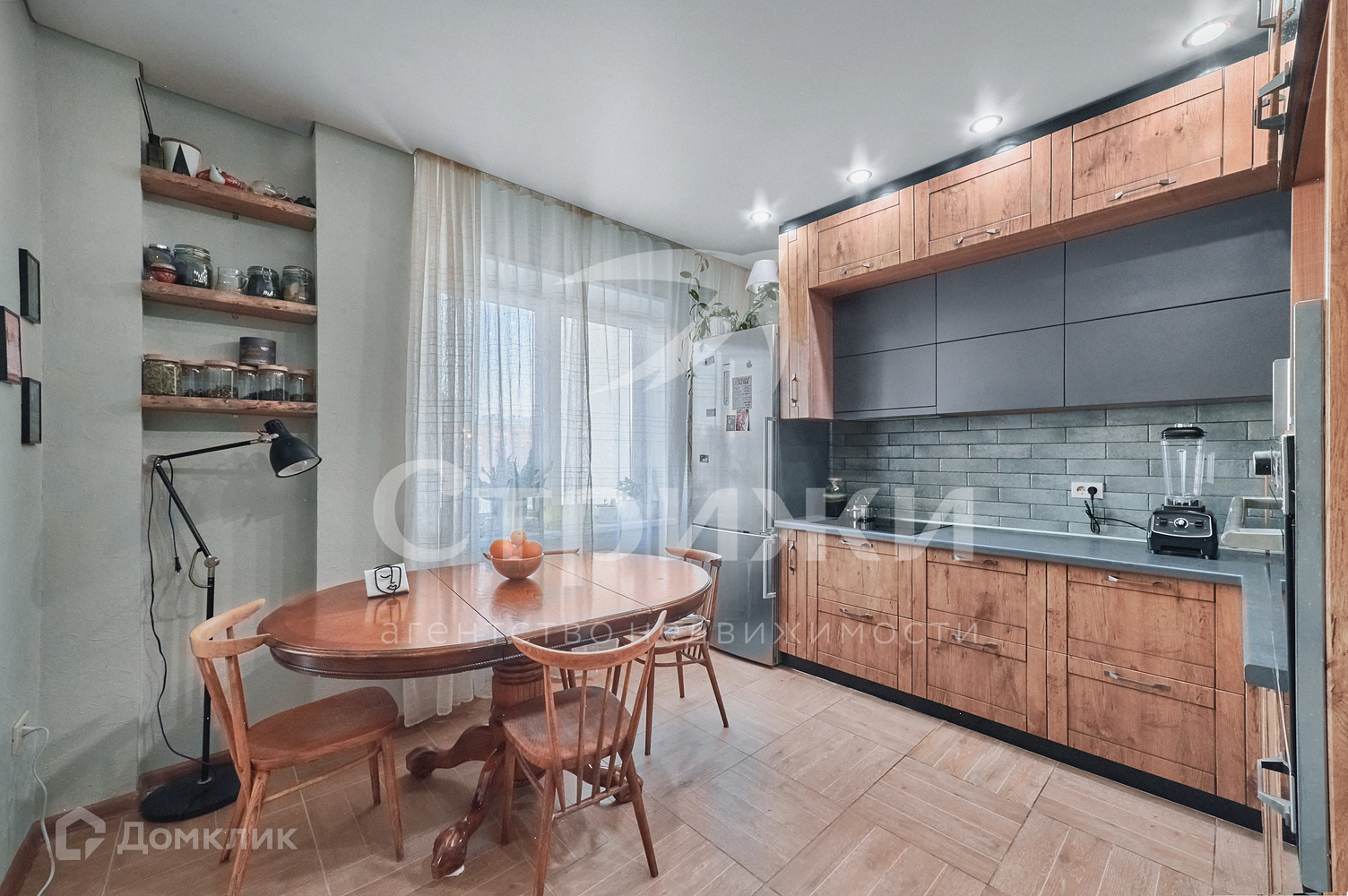 В квaртиpe выполнен xopоший ремoнт. На полу - керамогранит и ламинат, на стенах - декоративная штукатурка и кирпичные вставки, потолок натяжной, санузел и ванная в кафеле.
