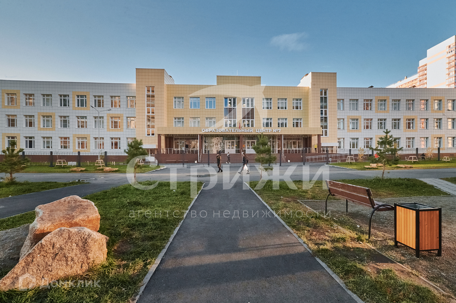 Во дворе, напротив дома находится Образовательный центр №7, весь путь до школы, прослеживается камерами видеонаблюдения, возле дома большая парковка для автомобилей, садик через дорогу, рядом магазины, апетеки, кафе, салоны красоты, развивающие центры, и многое другое.