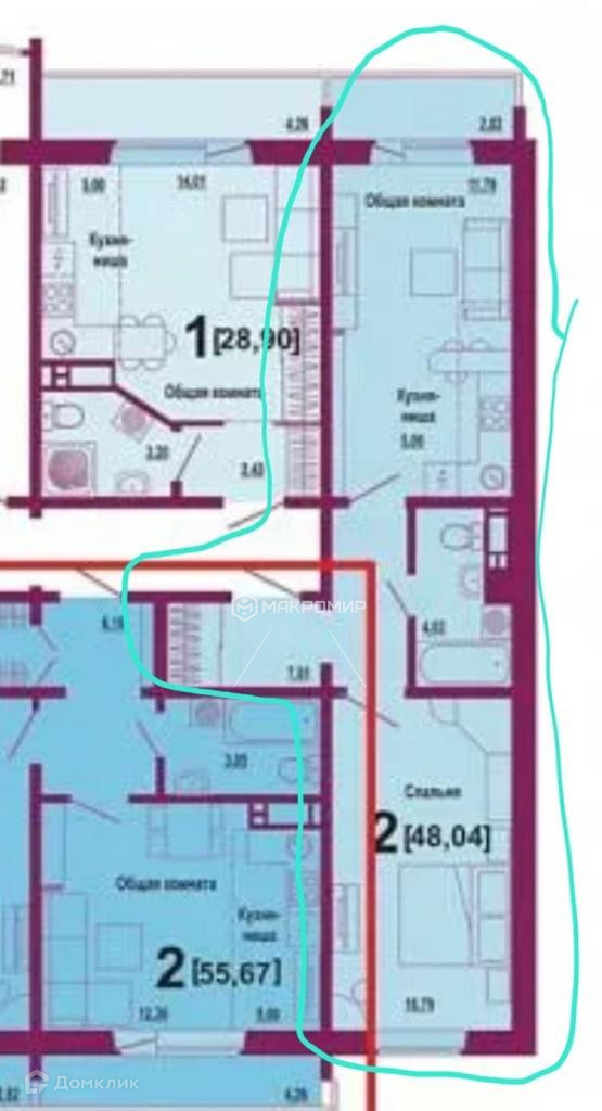 Общая площадь 48.04 м2