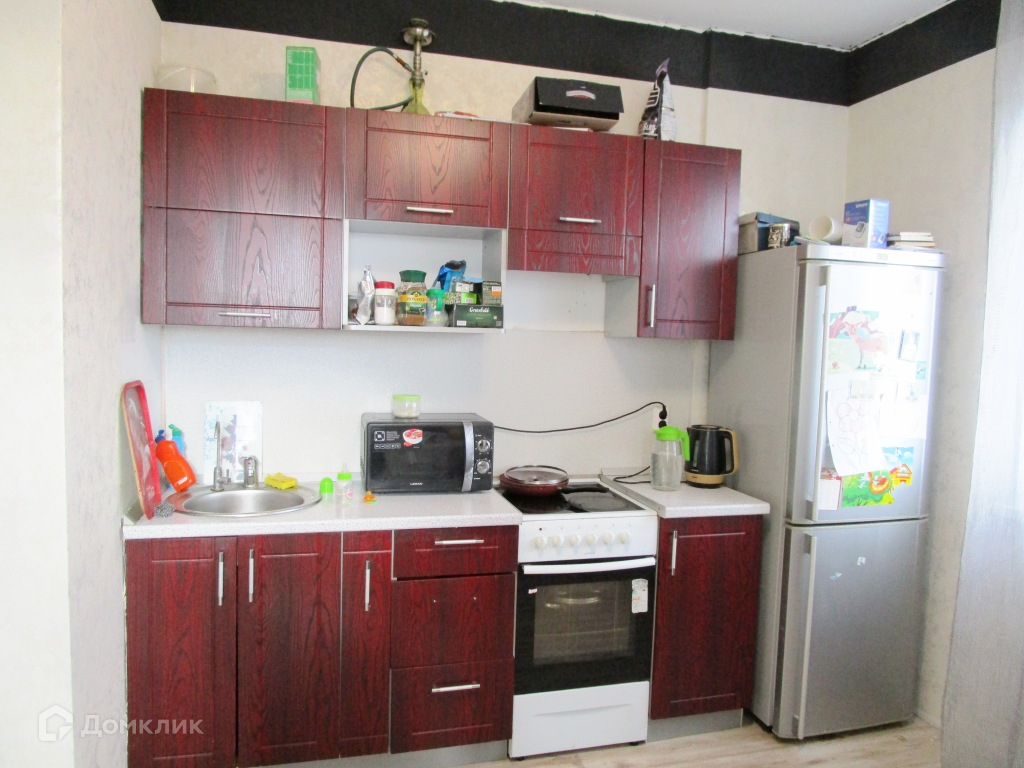 Новым хозяевам остаются кухонный гарнитур и большой встроенный шкаф-купе в прихожей.