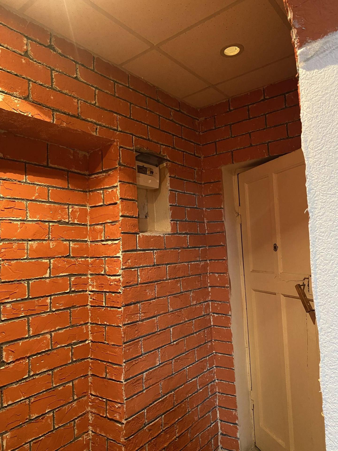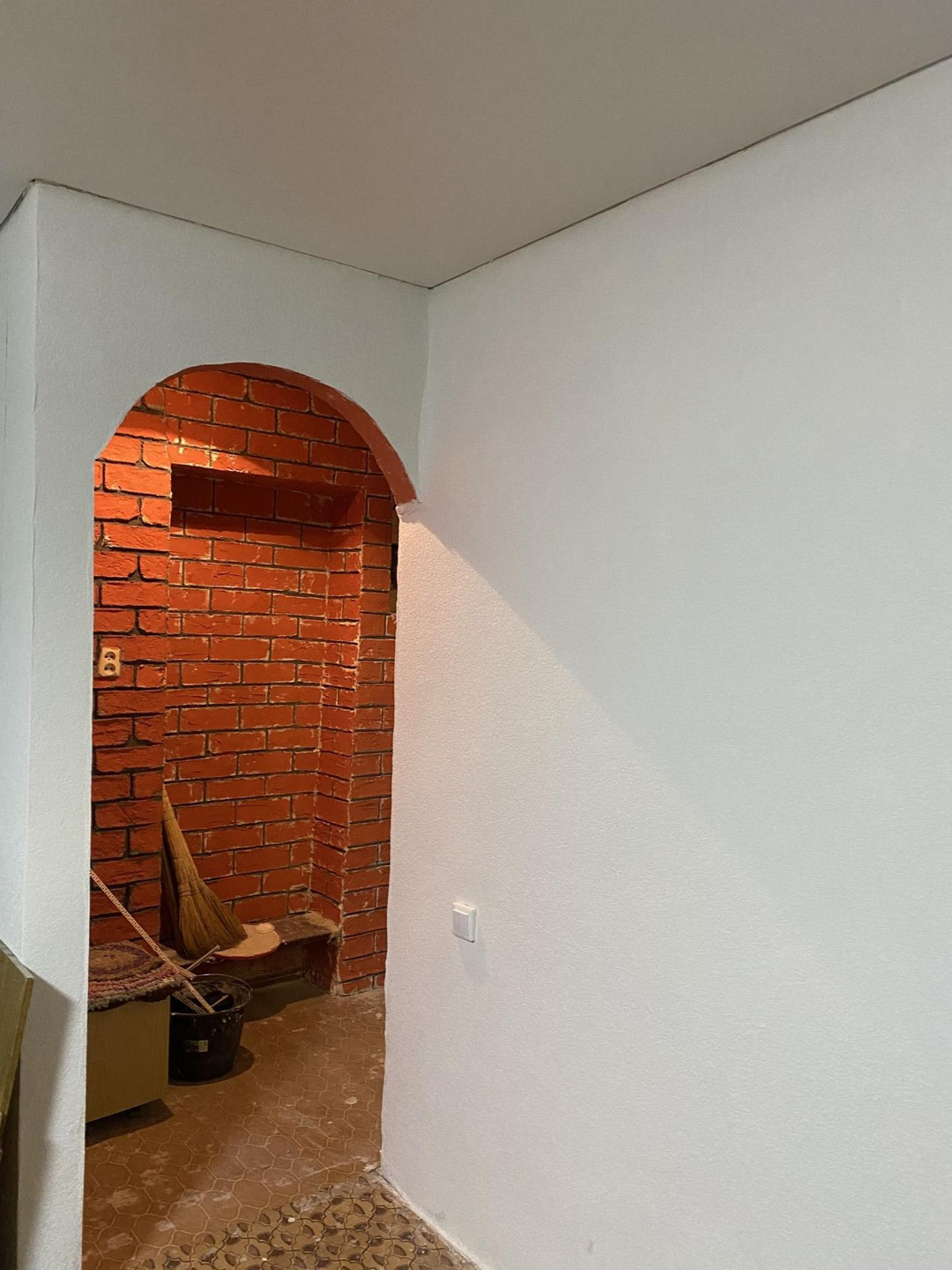 -стены в комнате и коридоре оштукатуренны, нанесено декларативное покрытие,