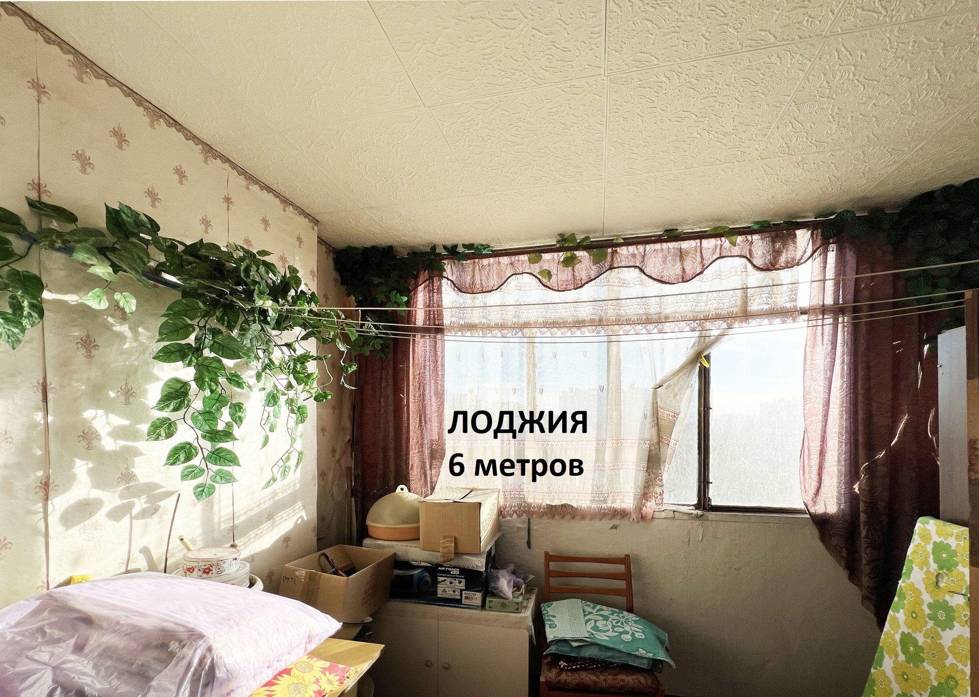 + ЛОДЖИЯ 6 метров (застеклена) плюс есть еще БАЛКОН (но он не застеклен)