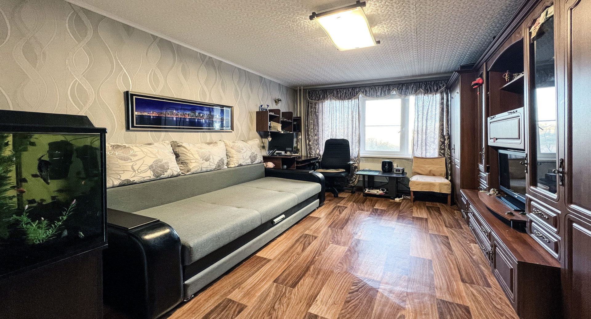 + ремонт косметический, пластиковые окна, обои, линолим