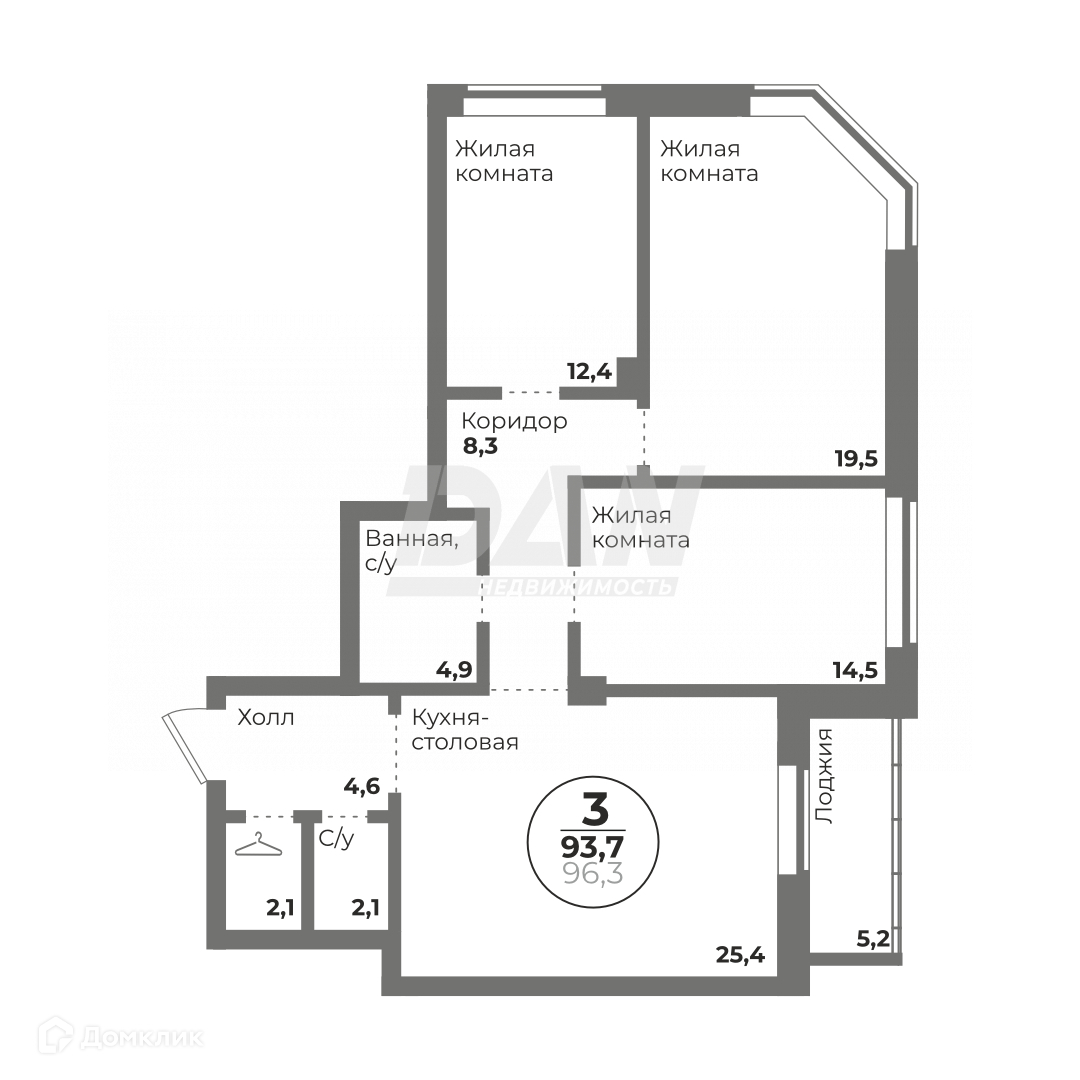 Общая площадь 93.7 м2