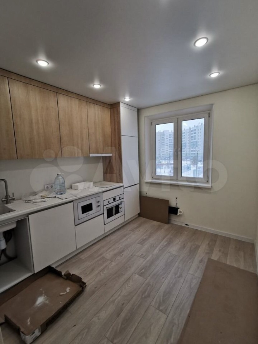 В квартире сделан полный евроремонт, выровнены стены, пол, импортные обои, ламинат 33 класса, натяжные потолки, санузел и ванна (кафель, керамогранит, новая дорогая сантехника, выходы под водонагреватель и стиральную машину).