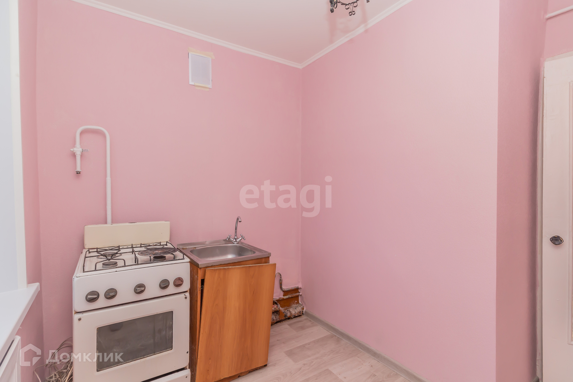 На кухне стены выровненные, отштукатурены под обои или покраску.