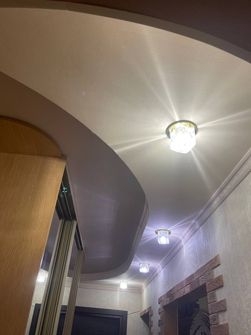 - двухуровневые потолки со встроенными светильниками