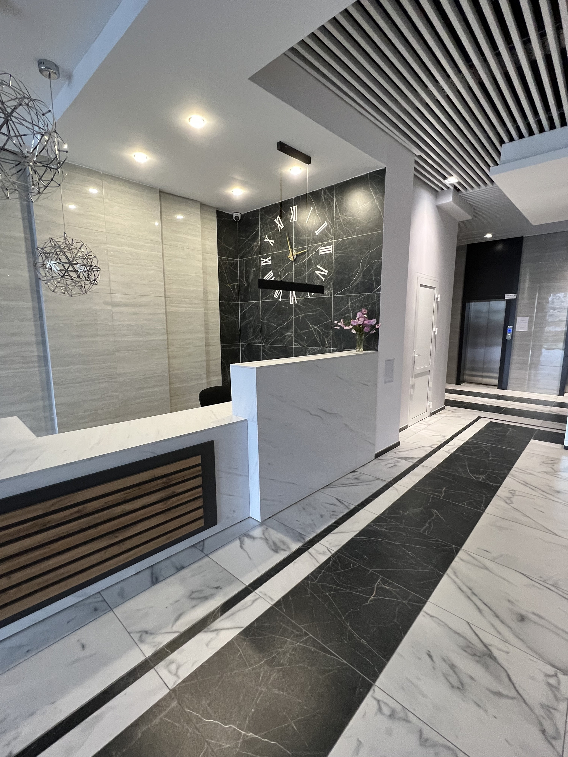 -Приветливый консьерж, уютная зона ожидания.