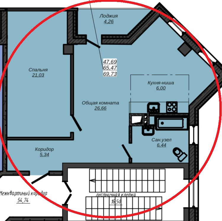 Общая площадь 69.73 м2