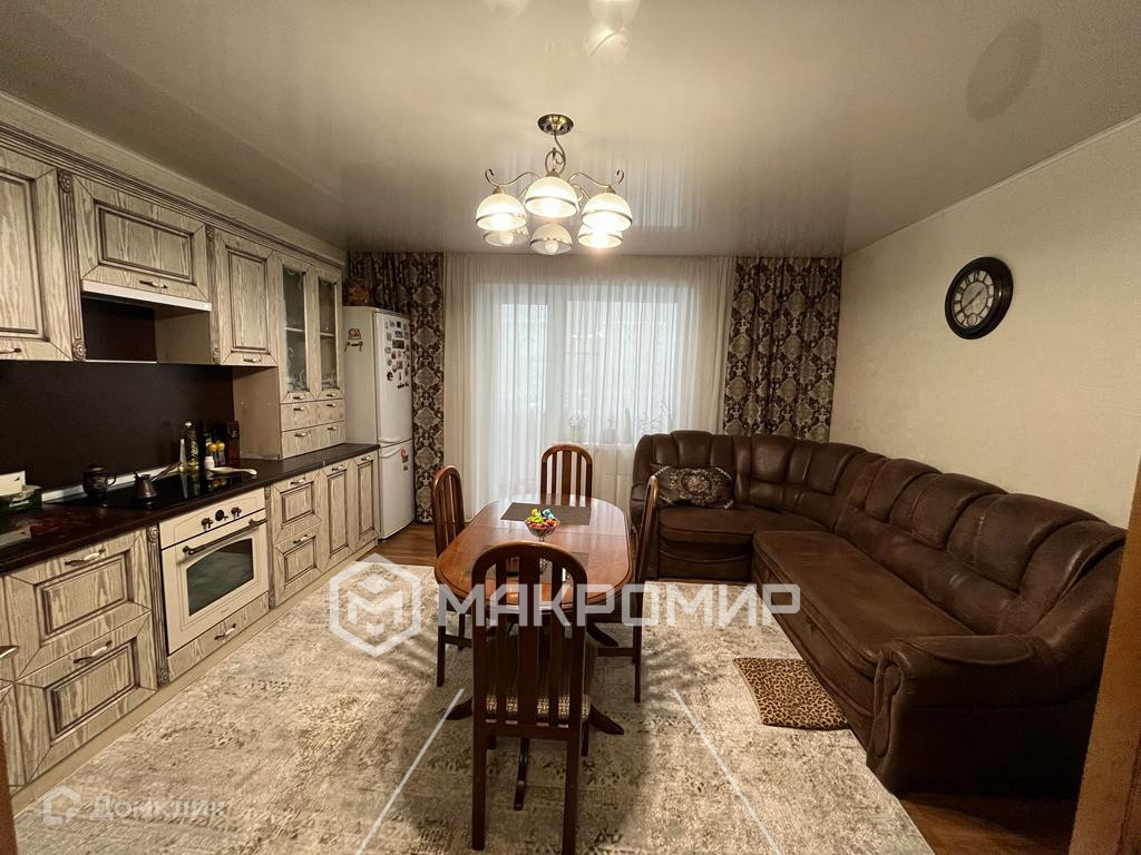 Особенностью этой квартиры является кухня - гостиная -  кухня перенесена в большую комнату, В гостиной есть выход на застекленный балкон