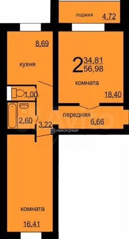 Общая площадь 57 м2
