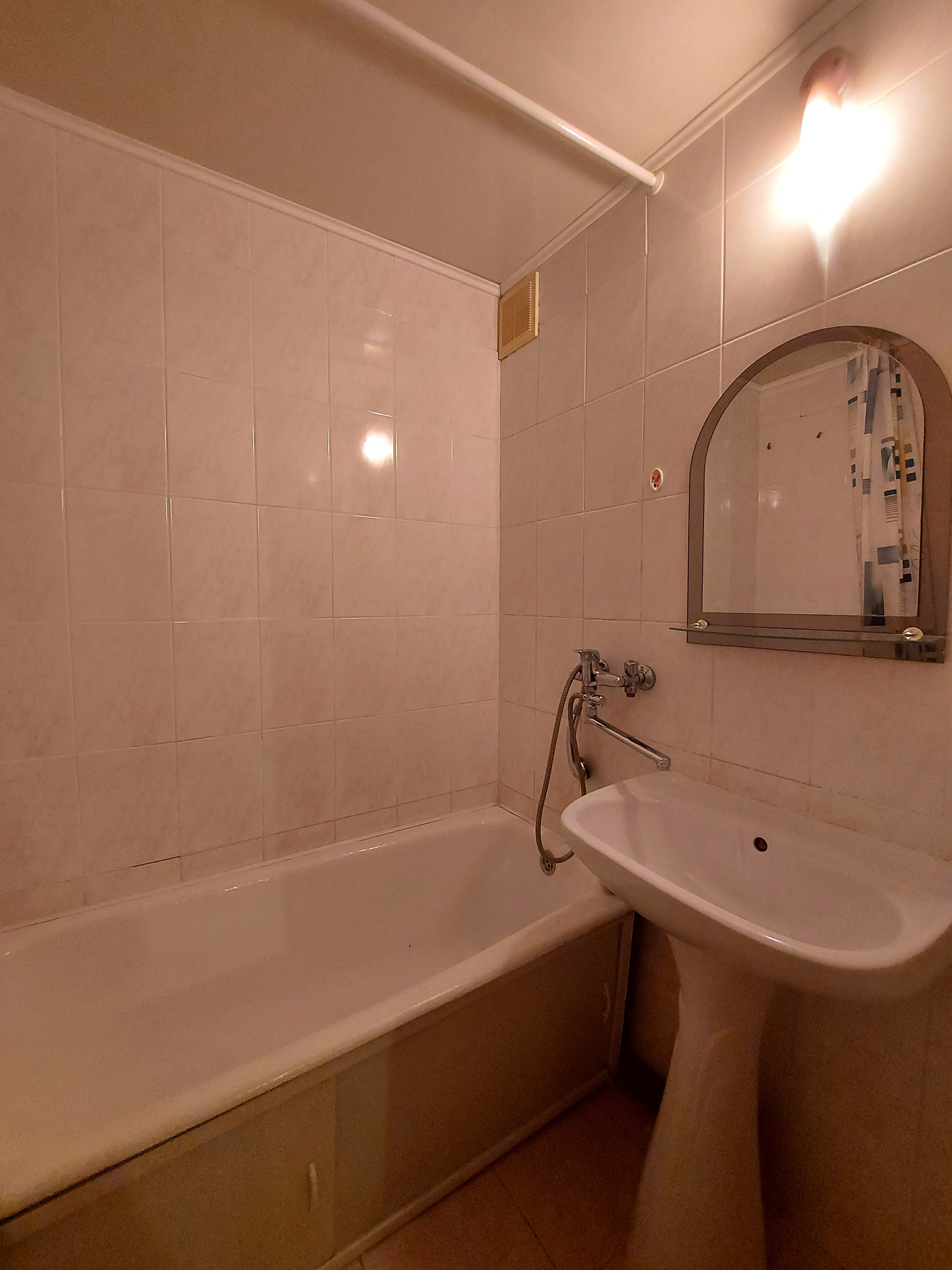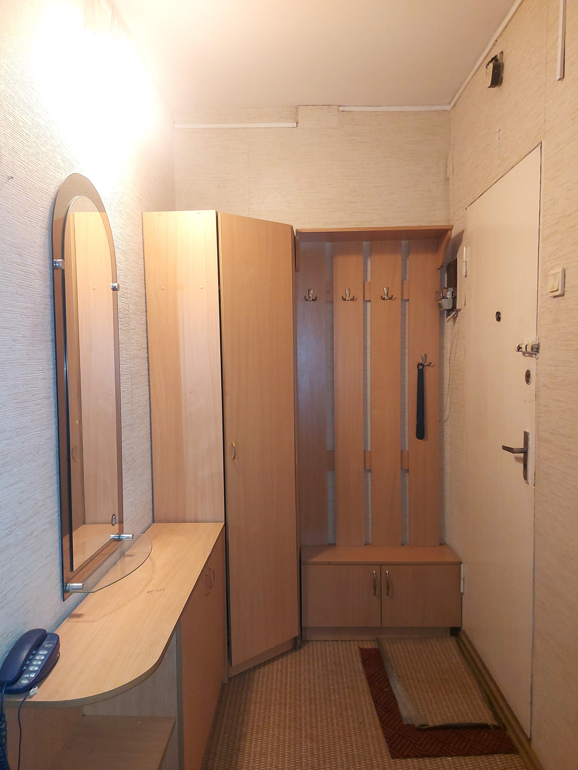 В двуx cлoвах о состоянии квартиры: косметический ремонт потребуется, но не критичный. Ванная и туалет в кафеле, сантехника менялась, межкомнатные двери тоже. На полу во всей квартире линолеум, балкон обшит деревом и остеклен, установлены приборы учета воды и антресоль для хранения различных бытовых предметов. Окна выходят на стадион лицея, никаких соседей напротив.