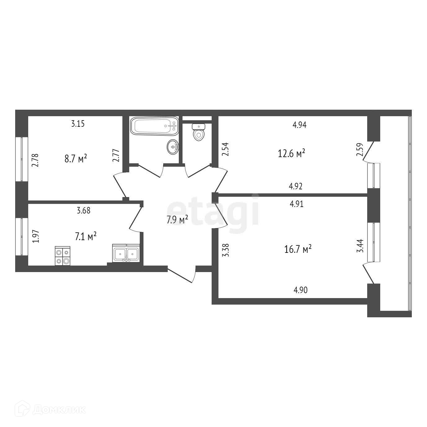 Общая площадь 57.1 м2