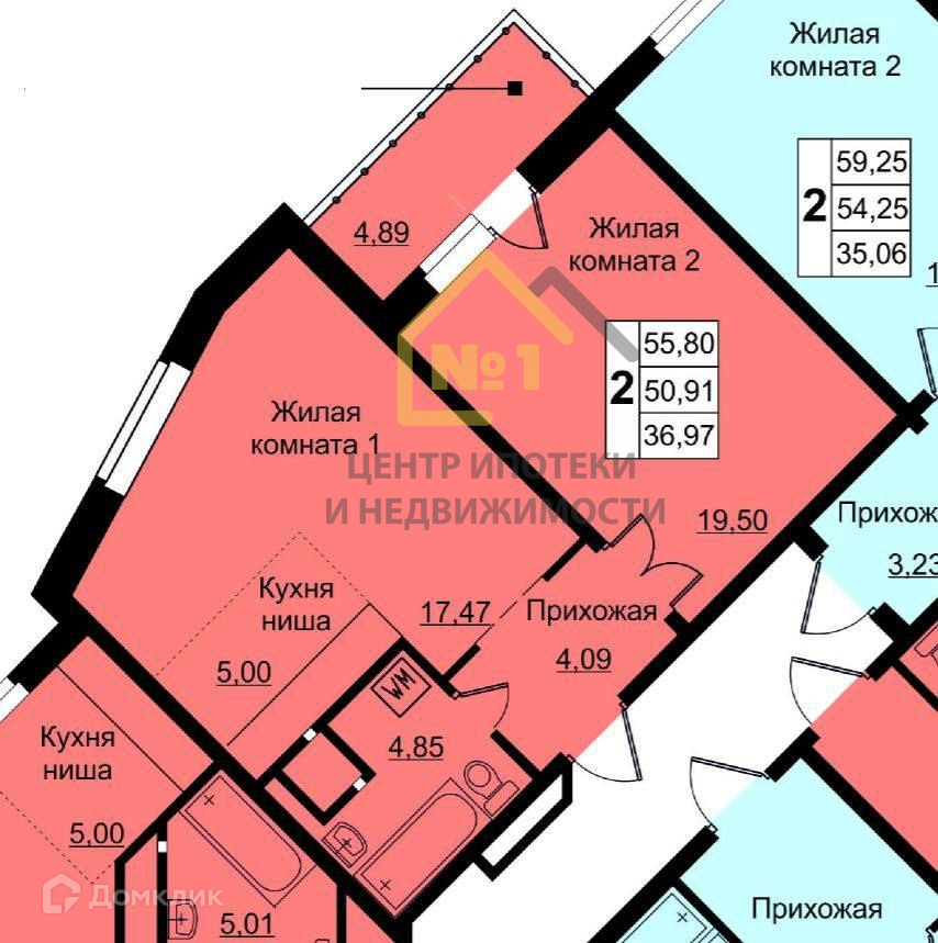 Общая площадь 55.8 м2