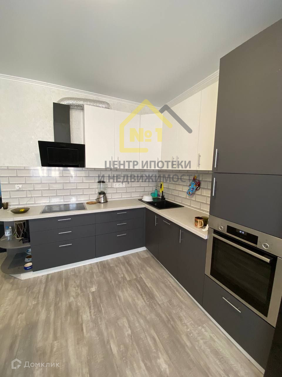 Новым собственникам останется кухонный гарнитур внушительных размеров со встроенной техникой(духовой шкаф, варочная панель, вытяжка, посудомоечная машина)