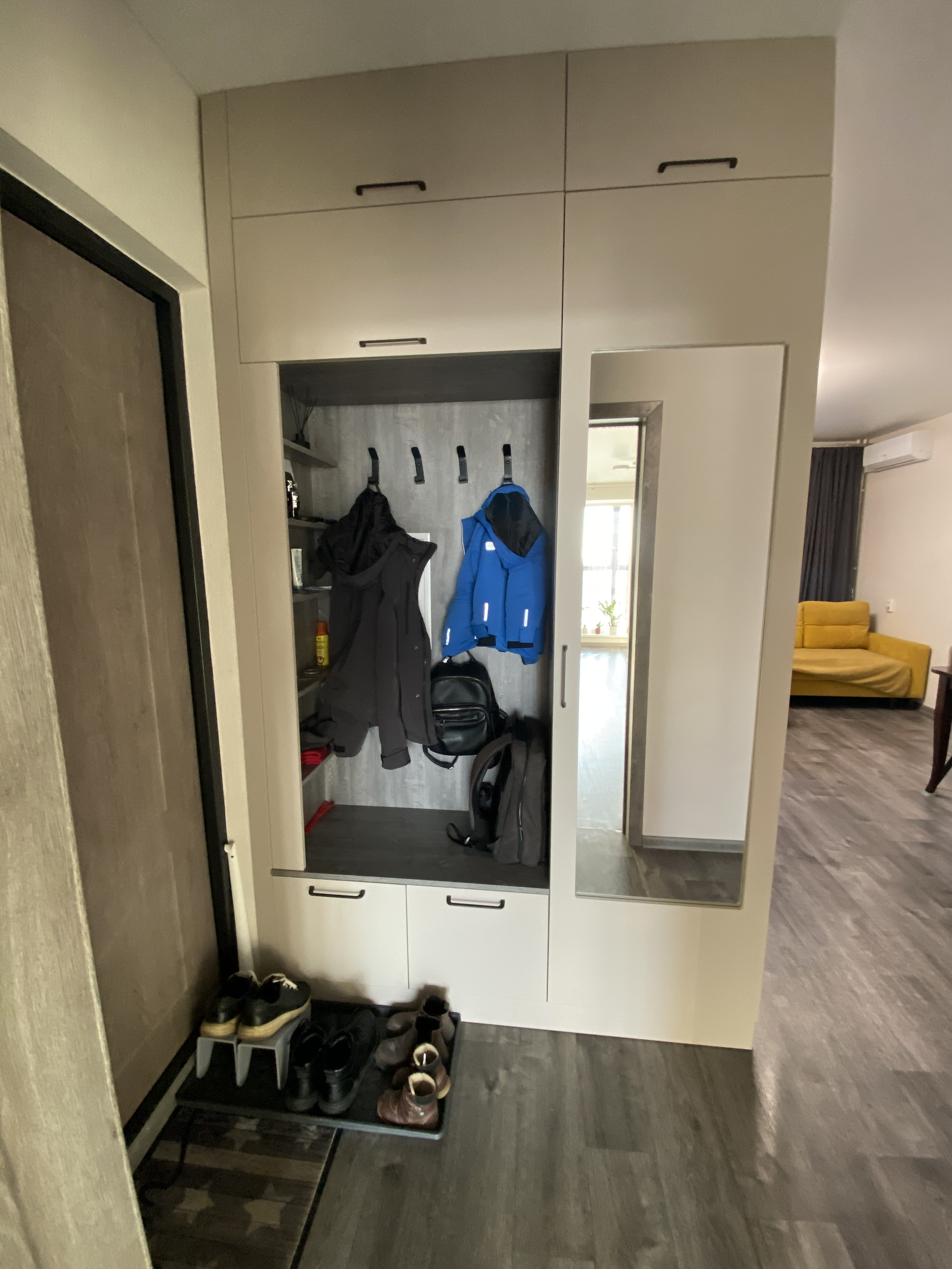 В квартире остается кухня и встраиваемая мебель, выполненные на заказ!