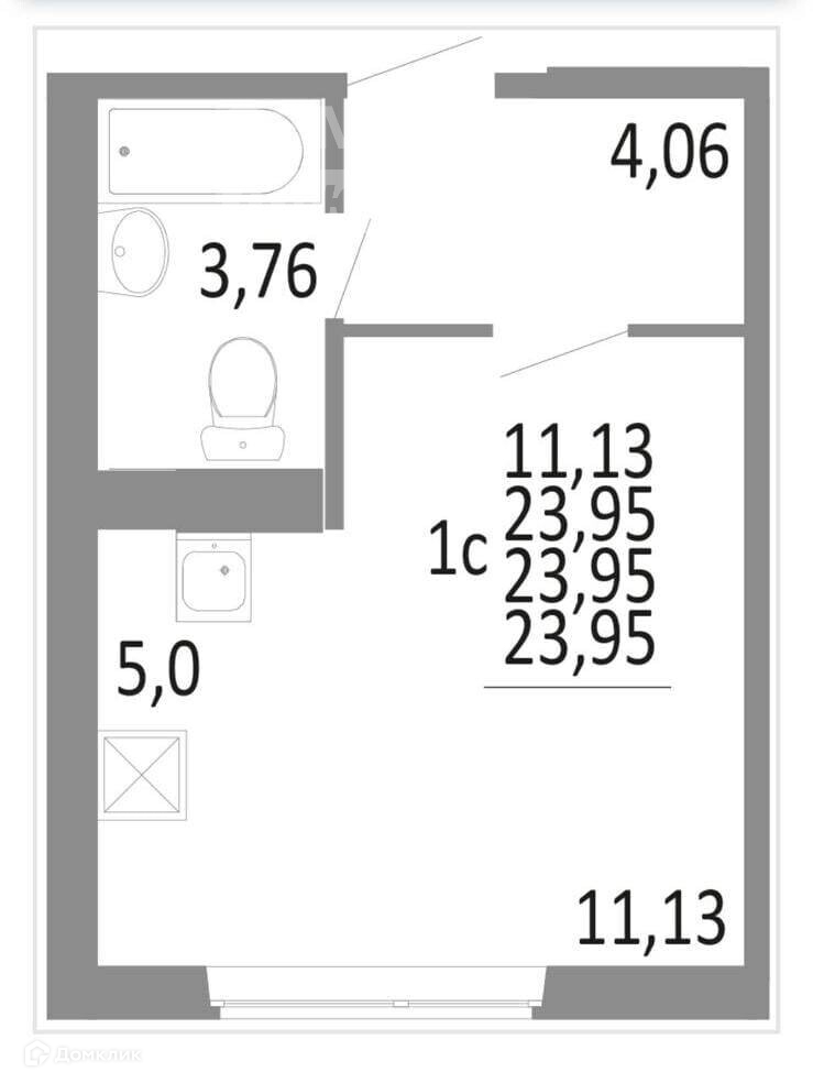 Общая площадь 23.9 м2